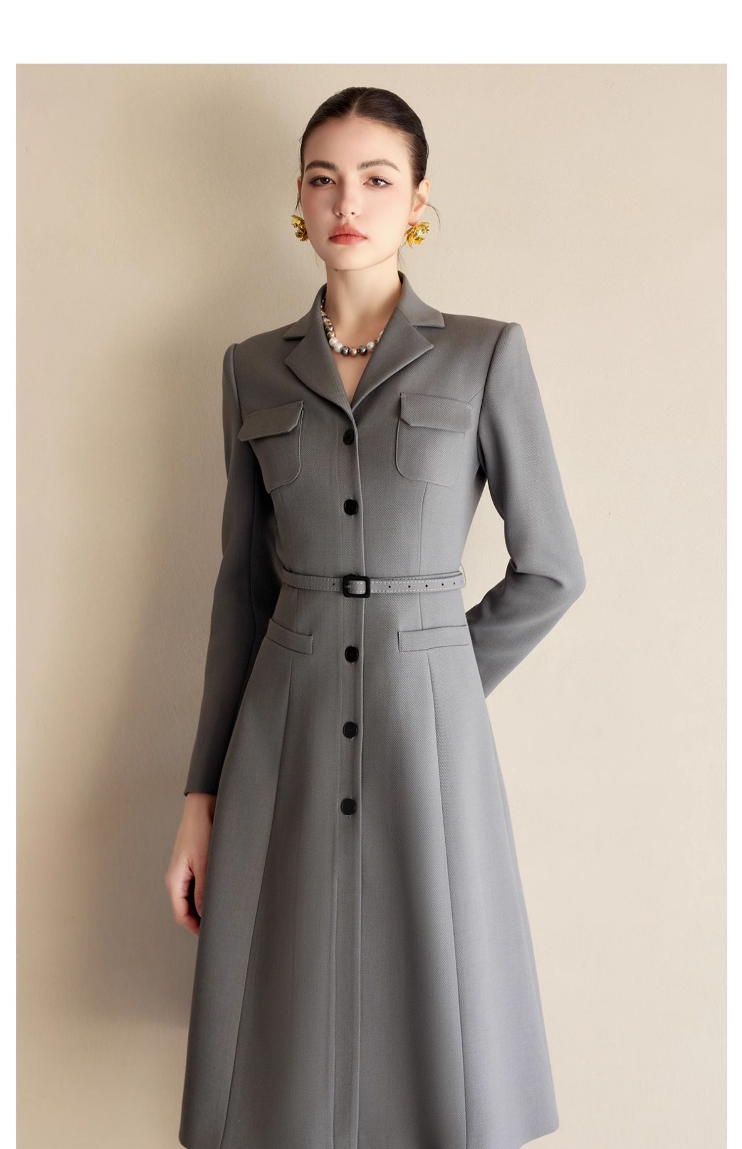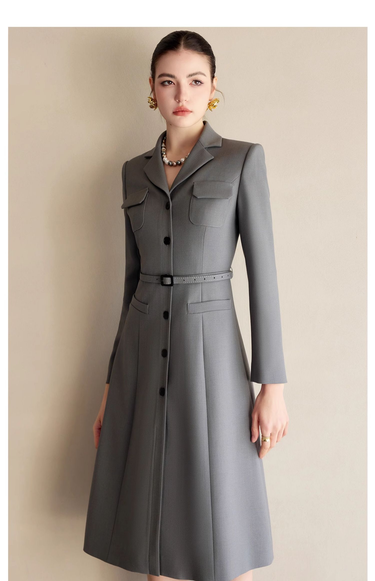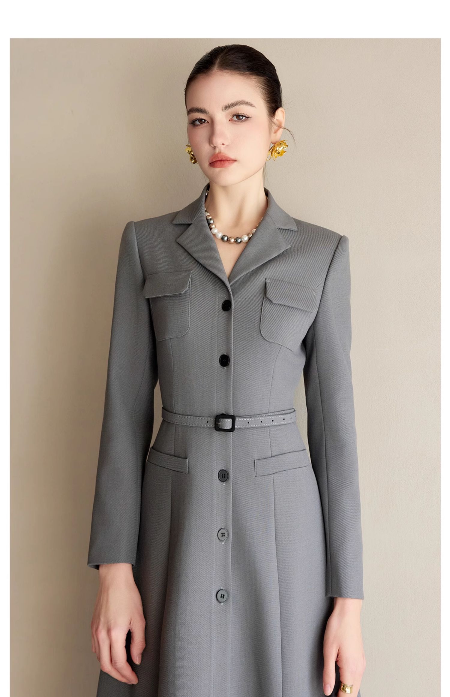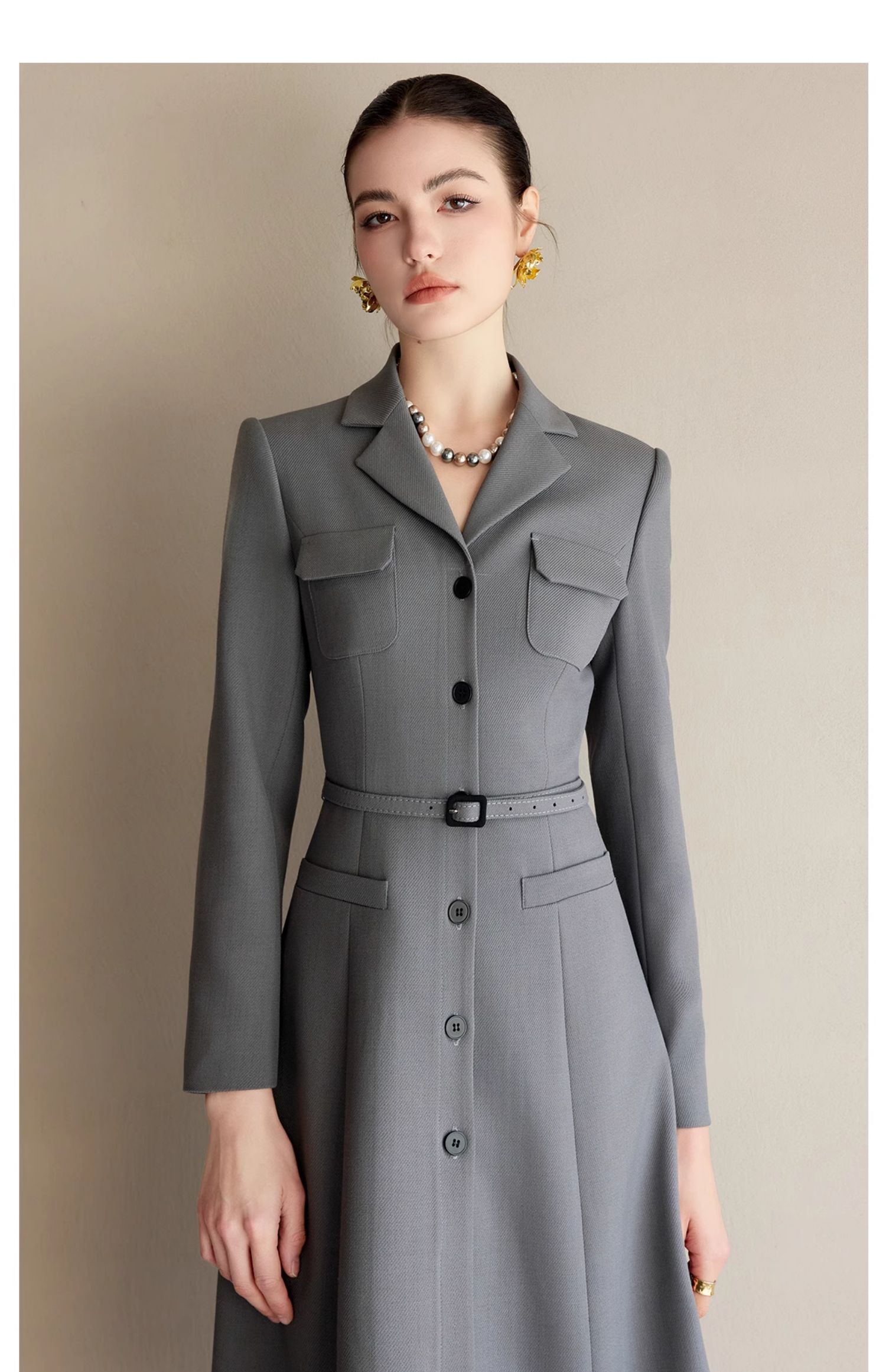 IWY/高端翻领灰色西装连衣裙女时尚干练销售职业裙装通勤工作服Q1284