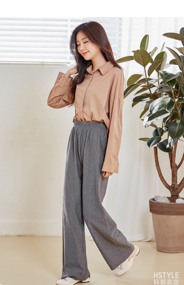 韩都衣舍2018冬装新款女装韩版宽松阔腿长裤纯色休闲裤OK1238鲲