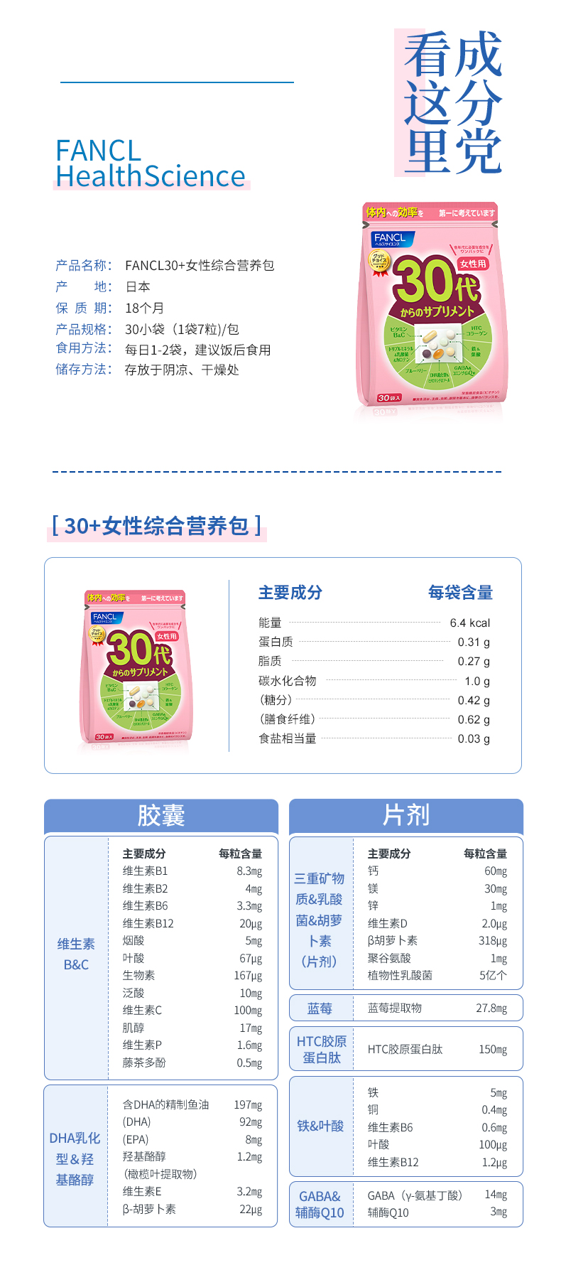 FANCL 30+女性综合营养包30袋/包(效期27-8) A-3926