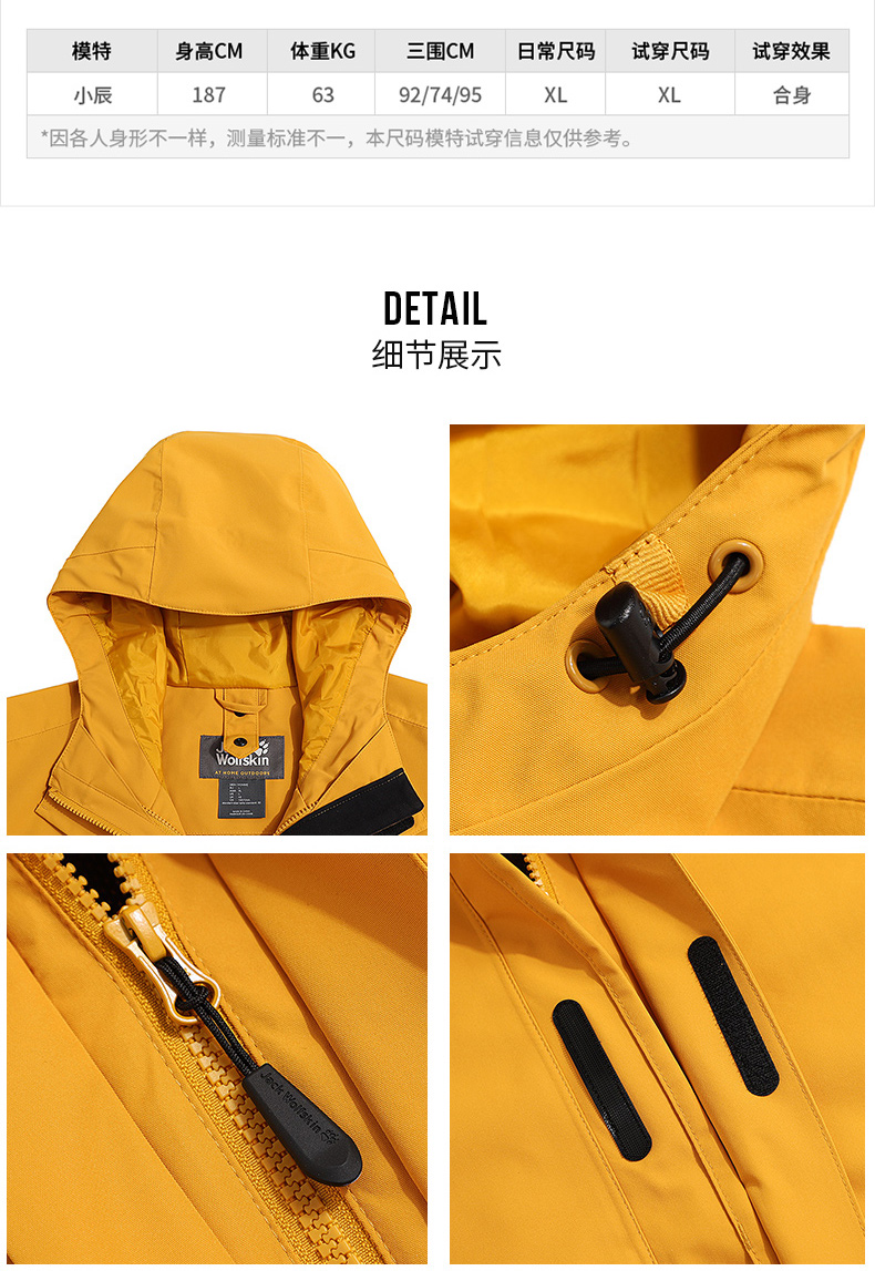 JackWolfskin狼爪官方冲锋衣男21秋冬新品户外防水透气保暖羽绒内胆三合一夹克5119673-3015