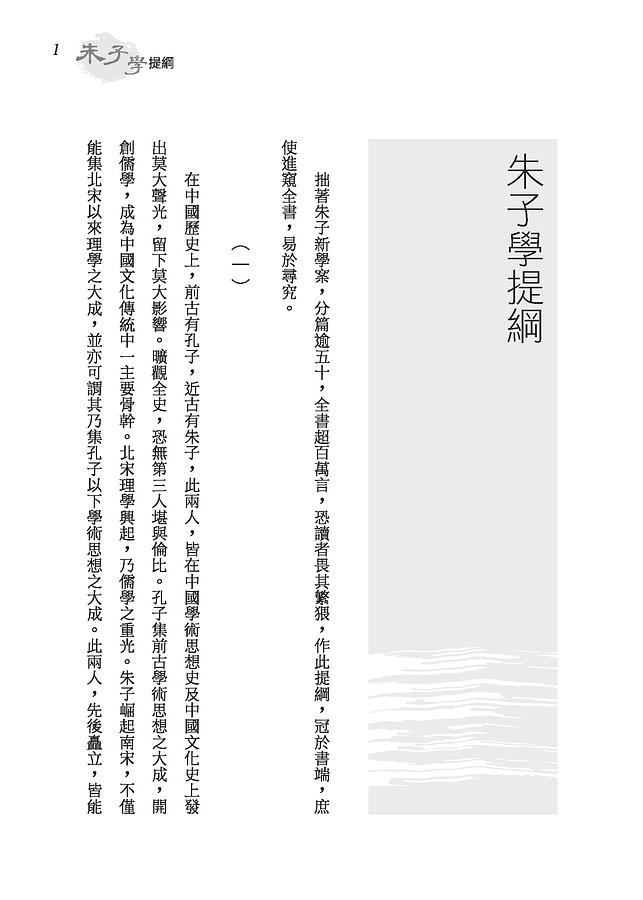 本書為《朱子新學案》一書之首部。中國宋元明三代之理學,朱子為其重要一中心。儻論全部中國學術思想史,則孔子為上古一中心,朱子乃為近古一中心。《朱子新學案》乃就朱子學全部內容來發揮理學之意義與價值,但過屬專門 ,學者宜先讀《宋元學案》等書,乃可入門。此編則從全部中國學術思想之演變來闡述朱子學,範圍較廣,但易領略,故宜先讀此編,再讀《朱子新學案》全部,乃易有得。