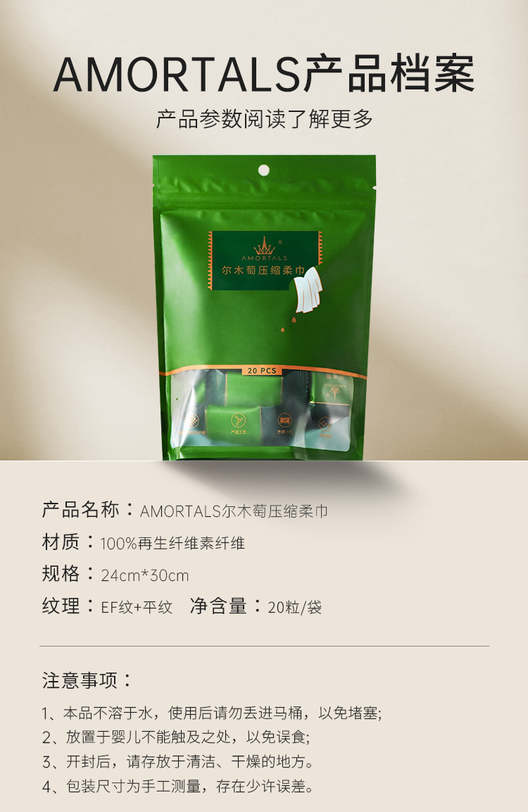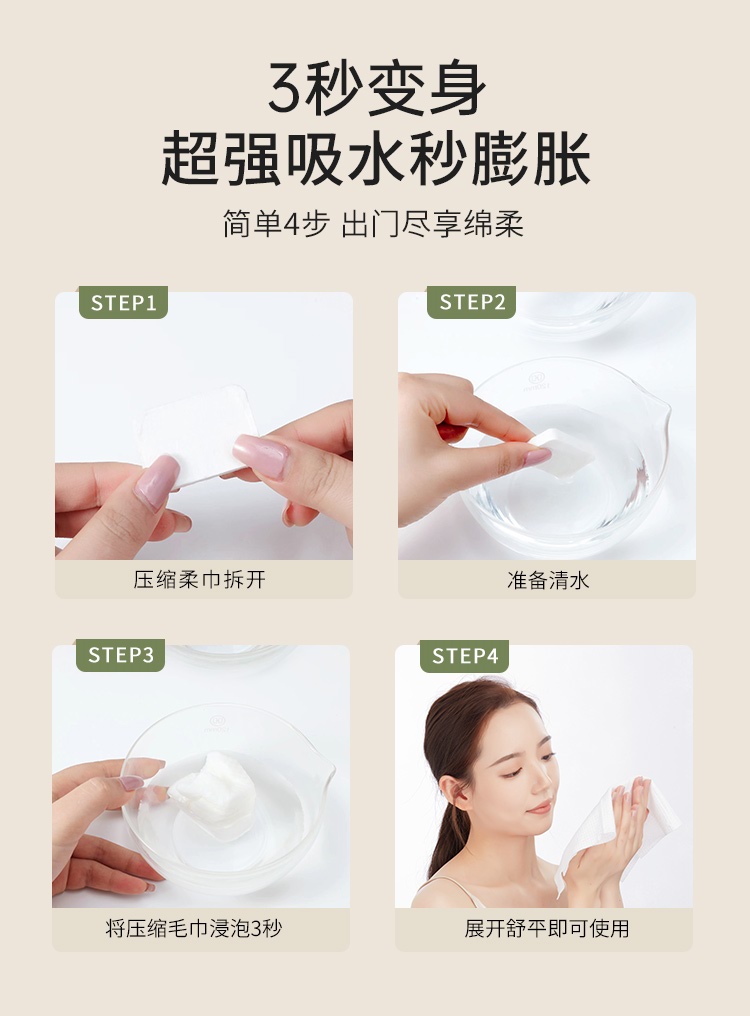 【尔木萄压缩毛巾*3包】厚实吸水 独立包装 便捷随行 0添加0刺激