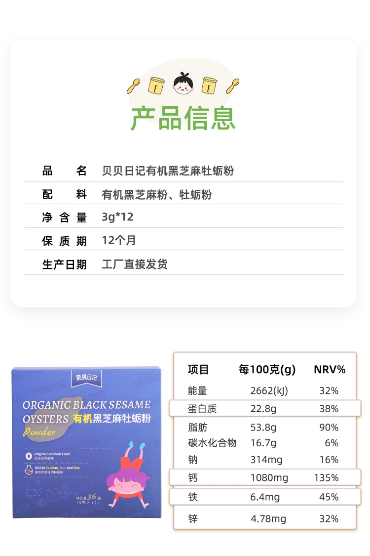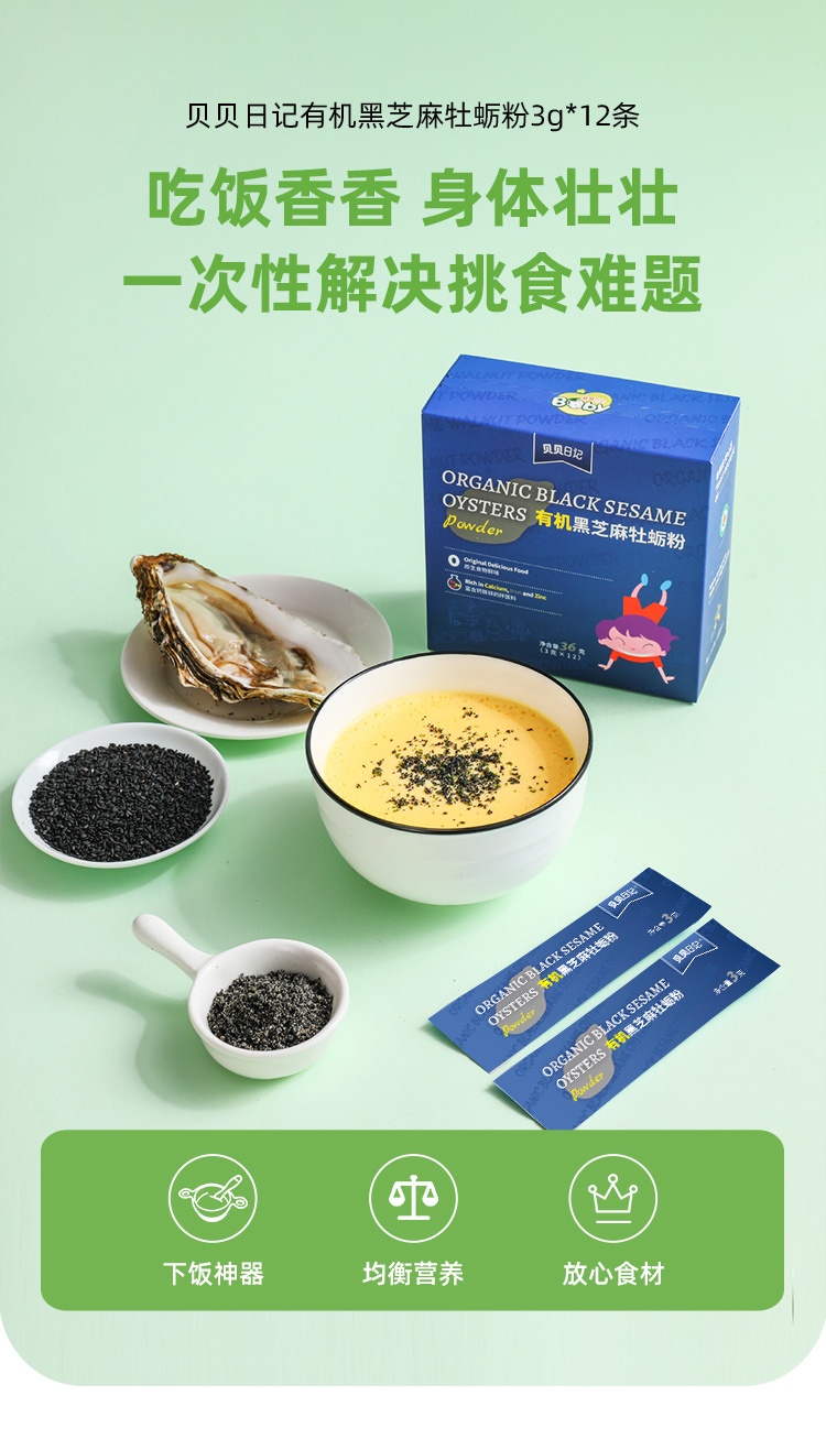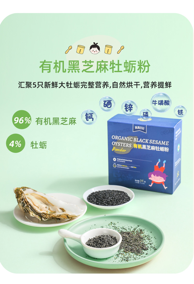 贝贝日记有机芝麻牡蛎粉36g/盒