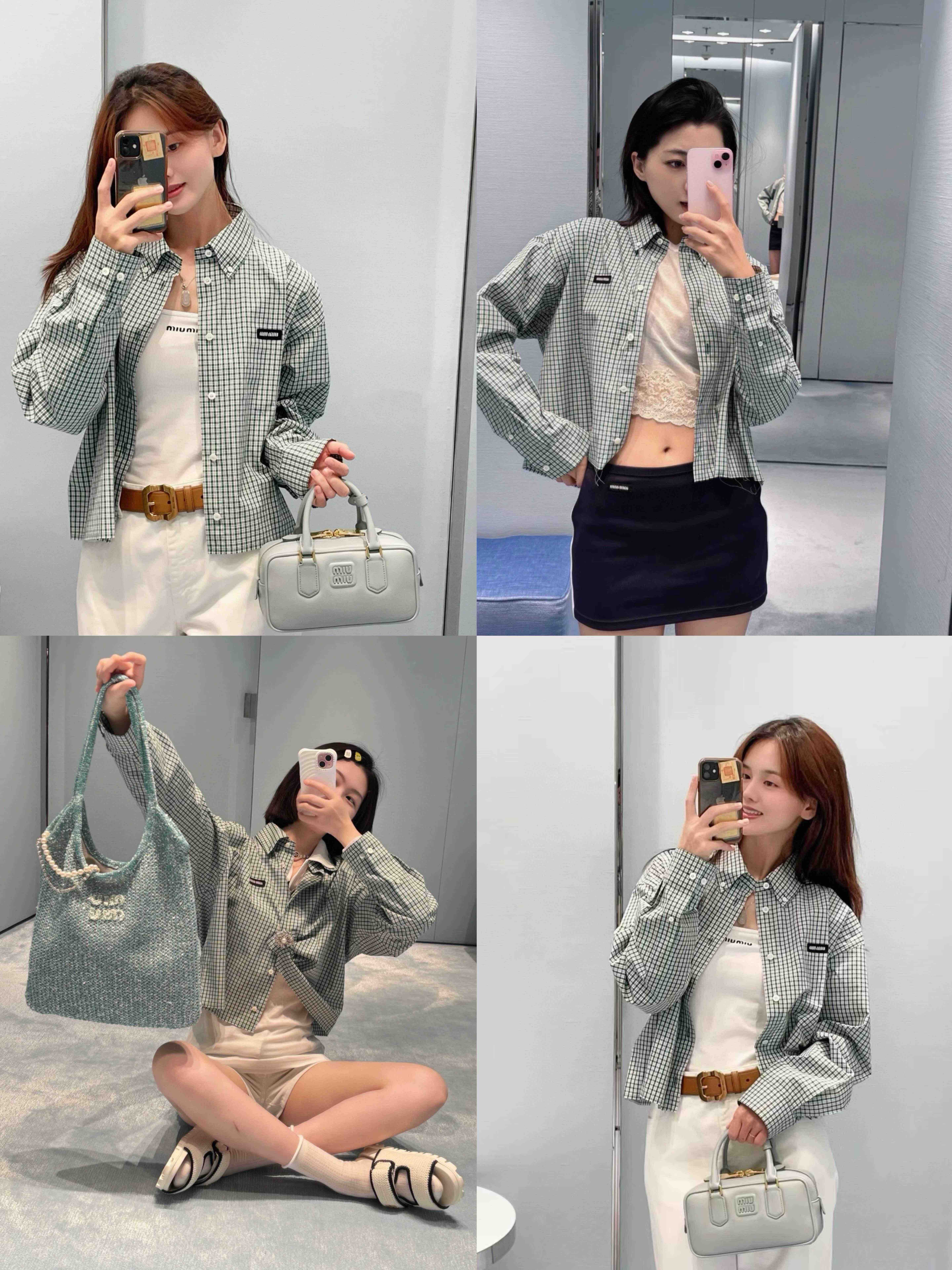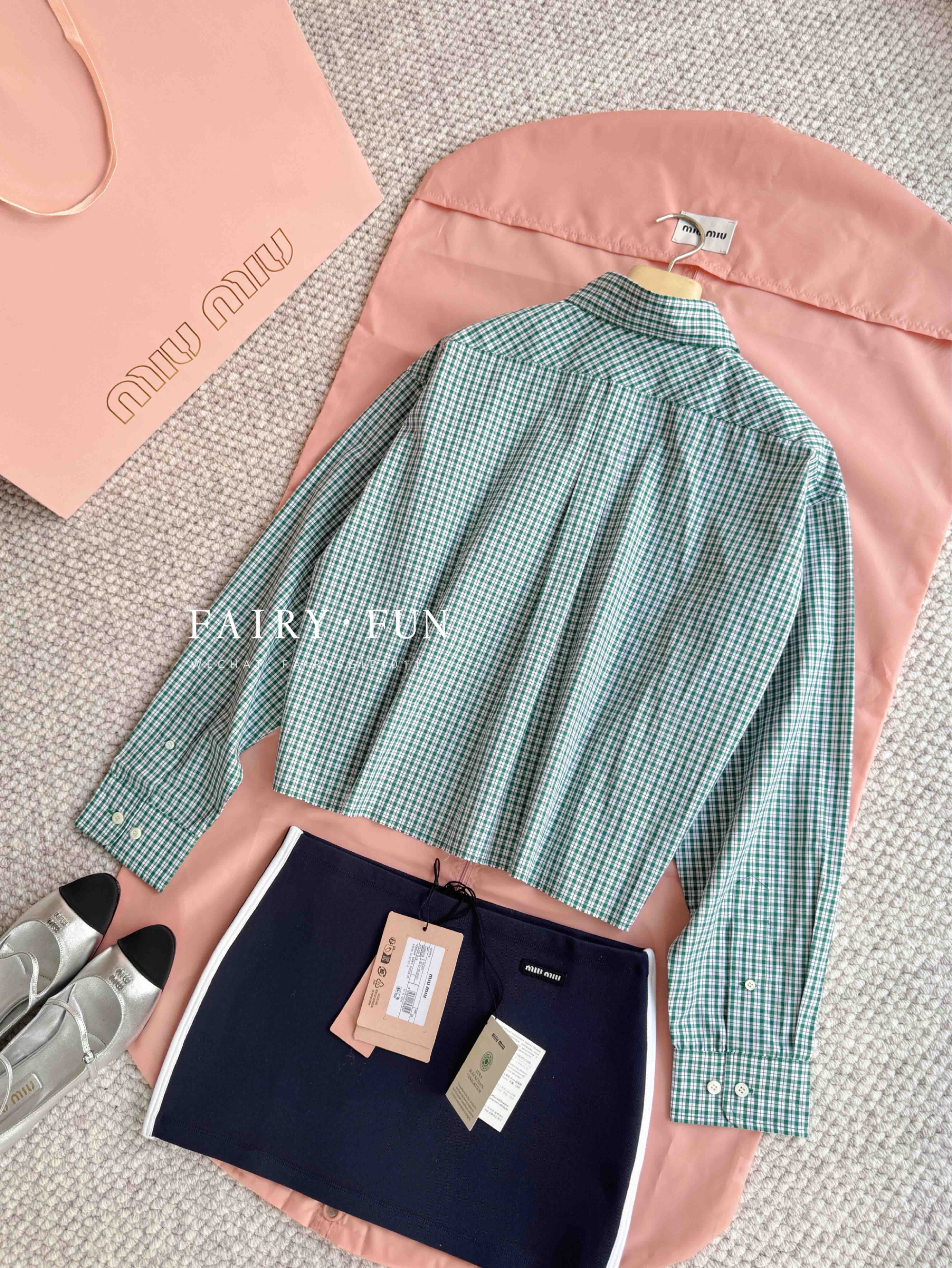 MIU-SK 绿格纹色织衬衫
