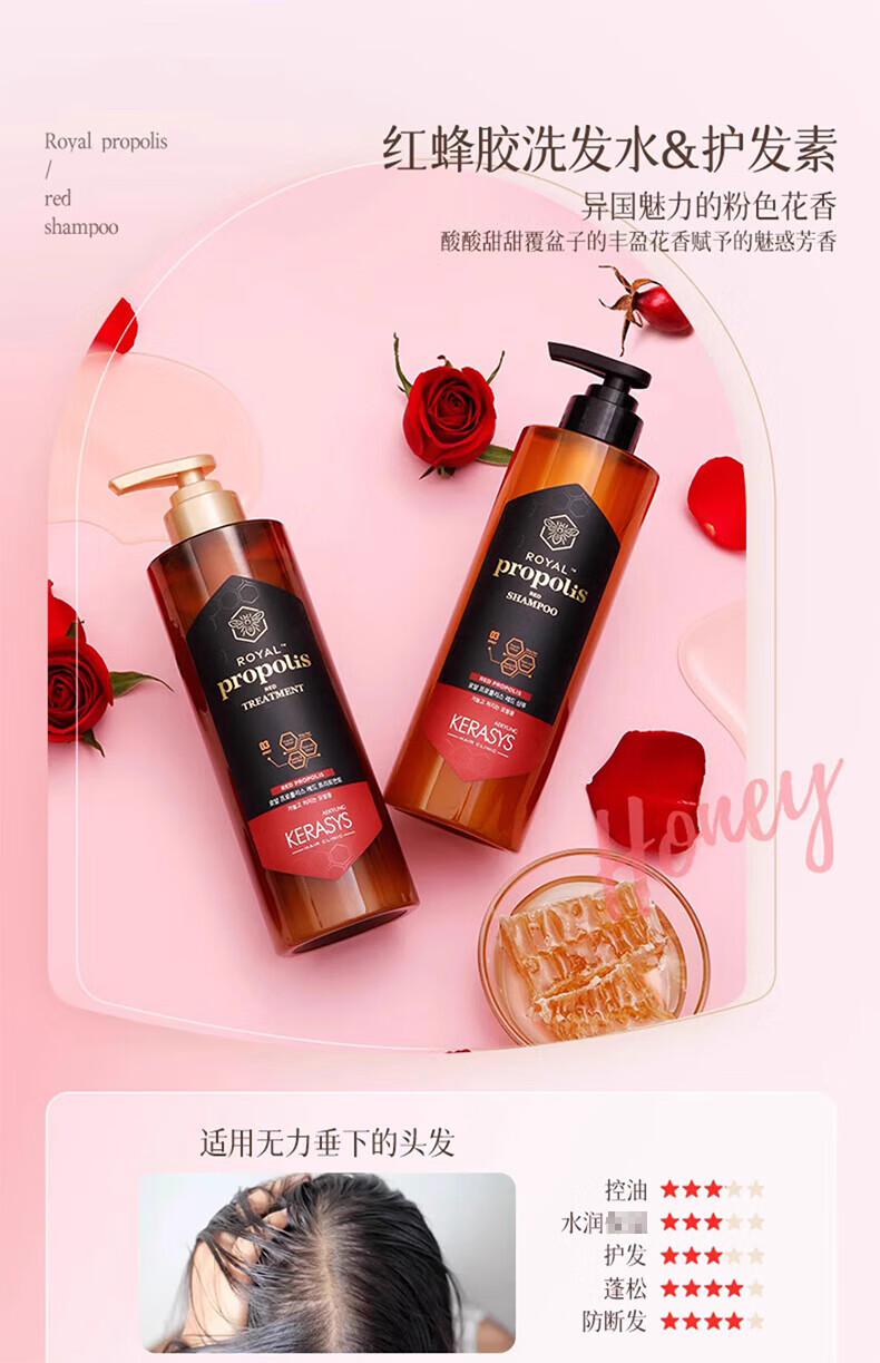 爱敬科娜洗丝蜂胶红色洗发水/护发素500ml 适用无力下垂毛发 110348/110347