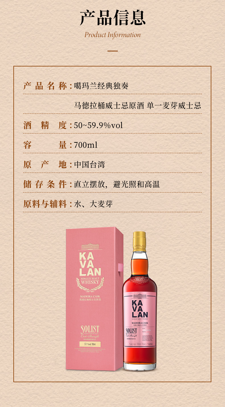 噶玛兰(Kavalan)马德拉单桶单一麦芽中国台湾威士忌