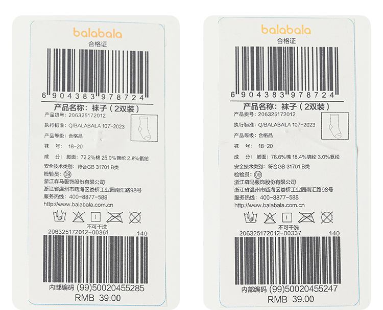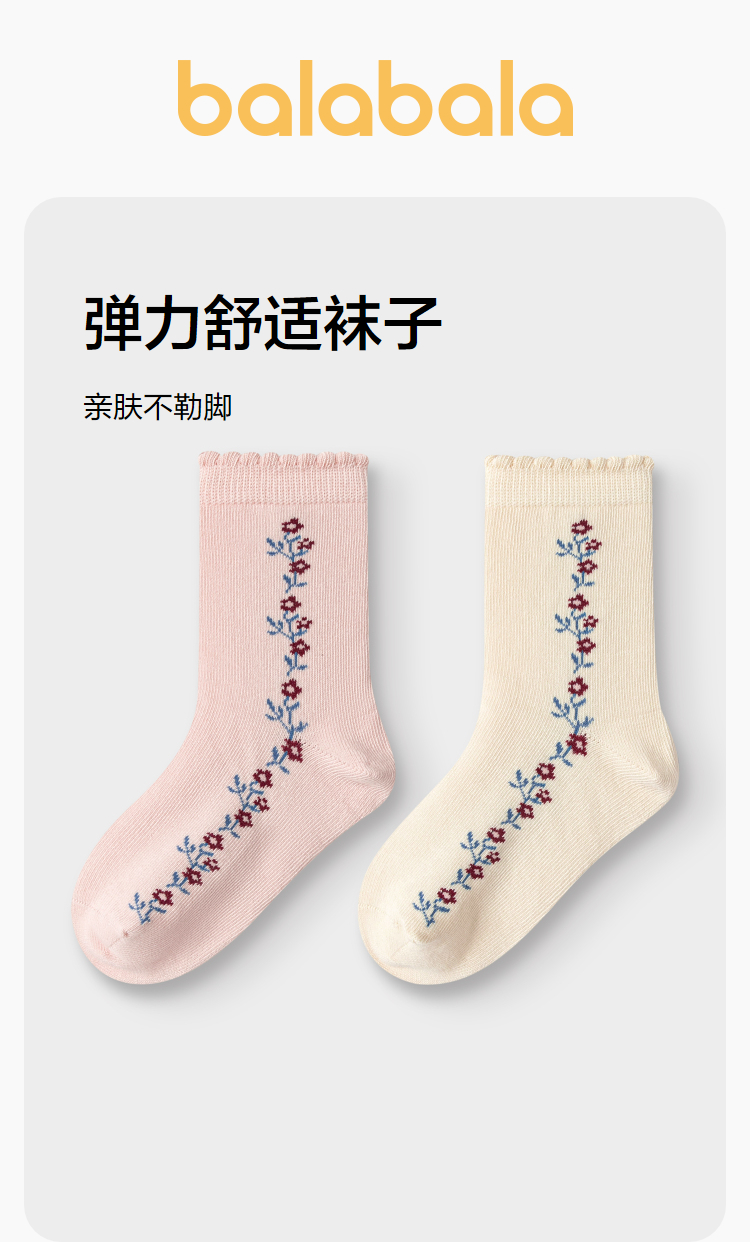 【商场同款】巴拉巴拉女童袜子秋新品儿童提花袜不勒脚甜美两双装