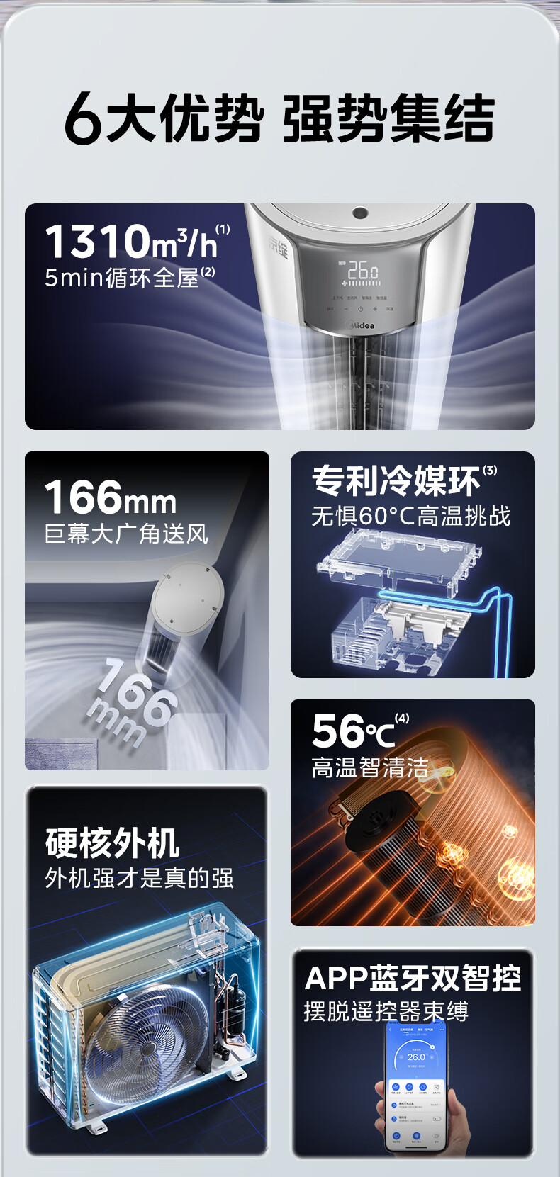国补到手价5279元 美的3匹 京绽 一级能效 变频冷暖 56°高温智清洁 APP蓝牙双智控 巨幕风口扫风 升级大风口 KFR-72LW/MJ102(1)