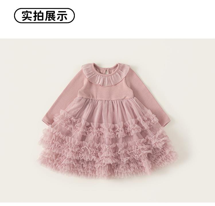 宥宝童装女童连衣裙春季新品儿童长袖蛋糕裙公主裙网纱小童裙子