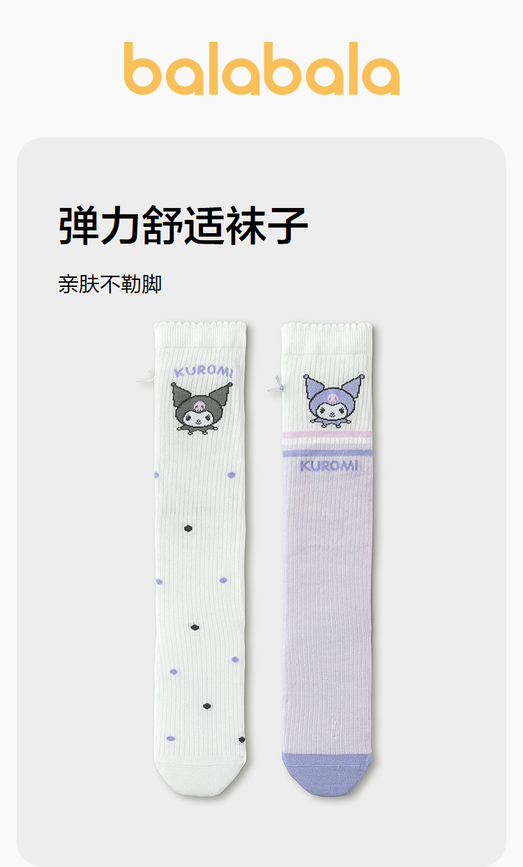 【三丽鸥IP商场同款】巴拉巴拉女童袜子夏网眼袜透气中筒袜两双装