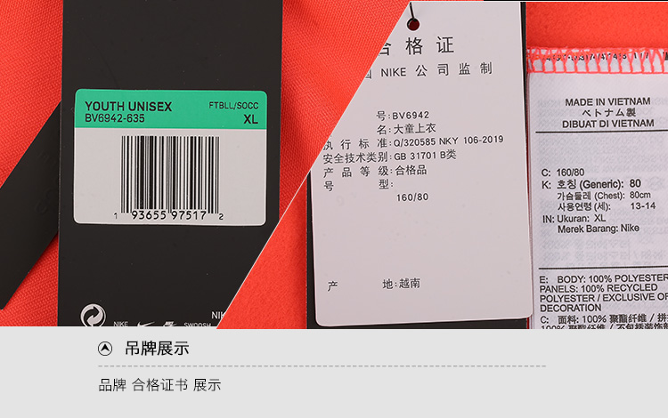 NIKE/耐克 大童半拉链长袖紧身足球训练服BV6942010