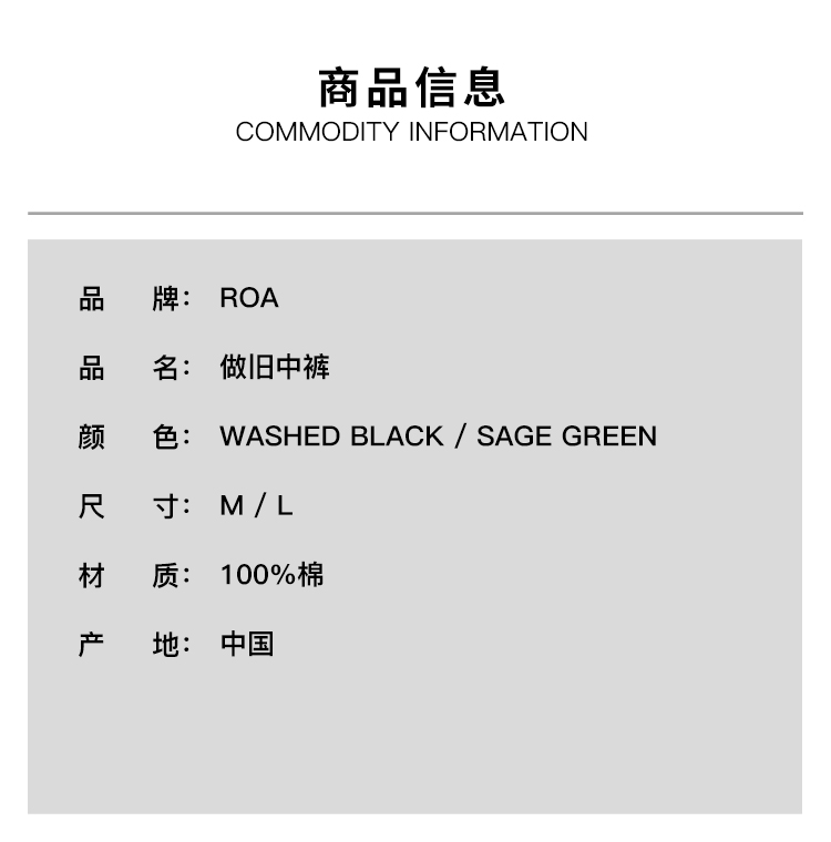 ROA ASH Canvas Shorts 成衣水洗做旧中裤