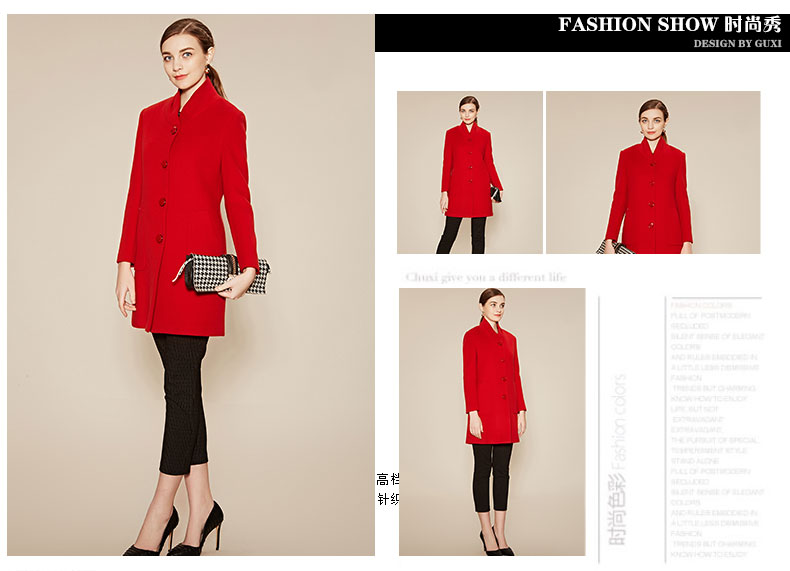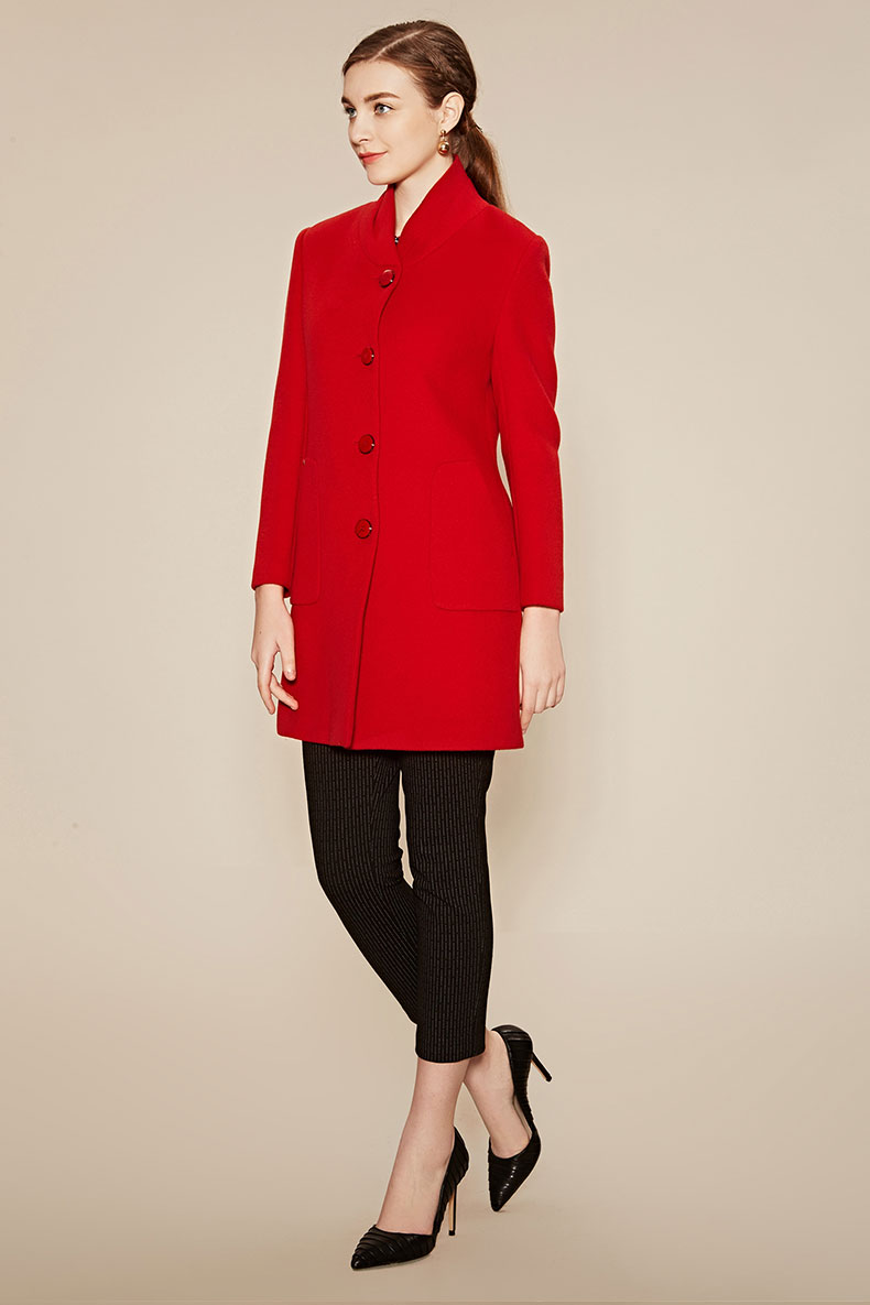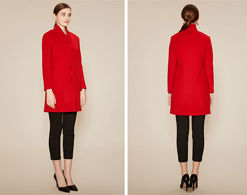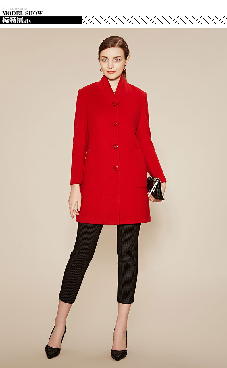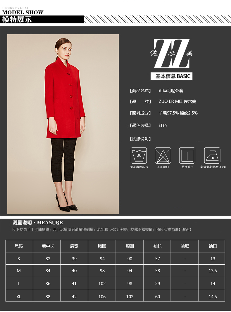 佐尔美秋冬新款女装毛呢外套女中长款修身毛大衣女大红E64ZZ31