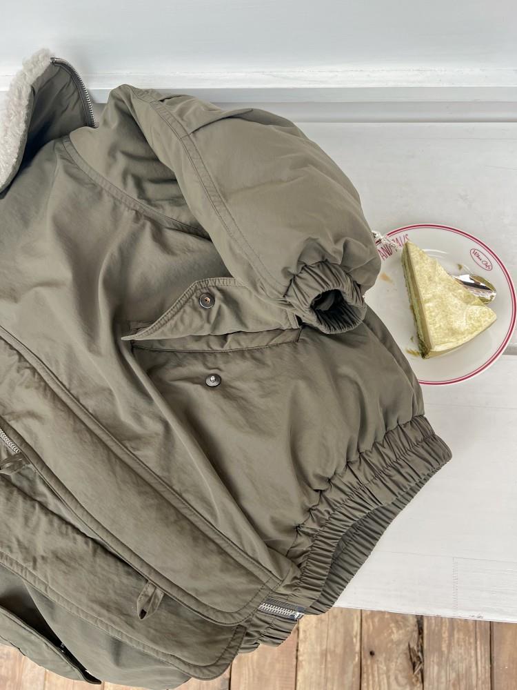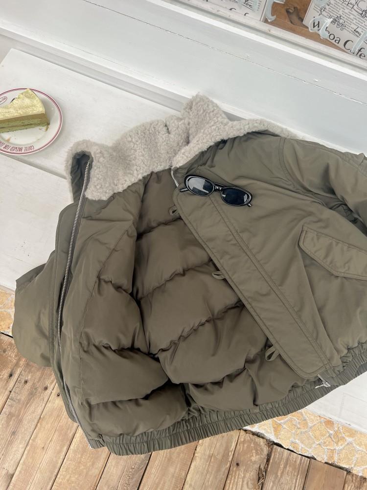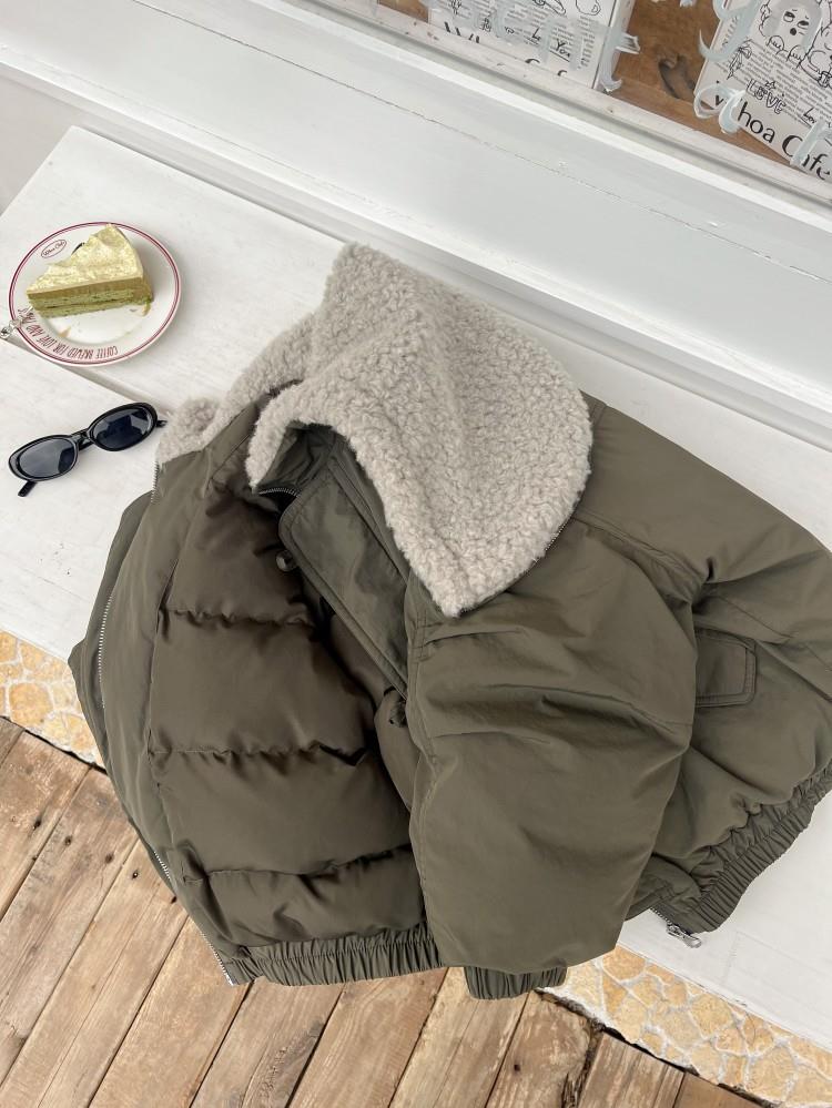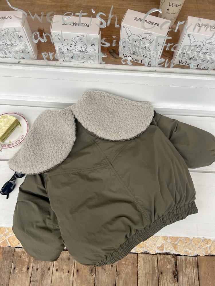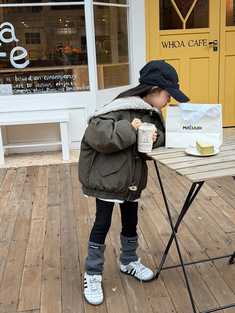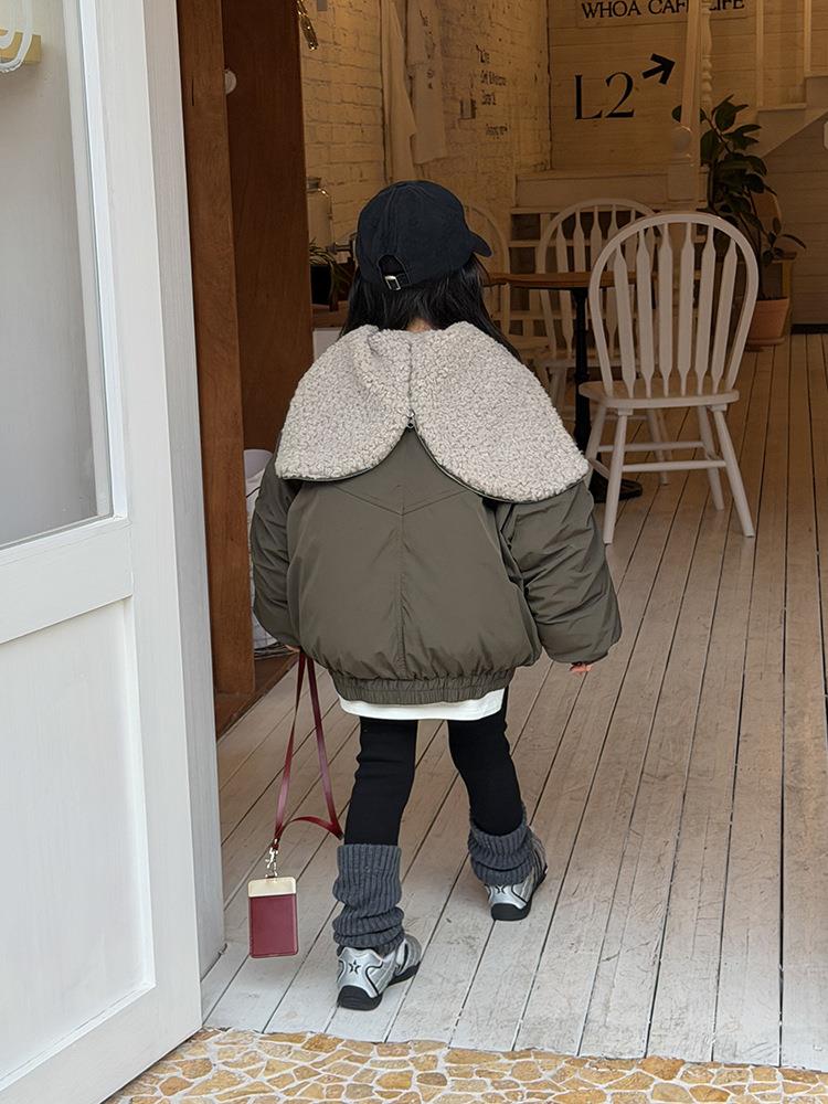 艾摩贝贝儿童保暖时髦牛角扣棉衣女童宽松毛绒翻领棉服连帽外套【杜邦棉】