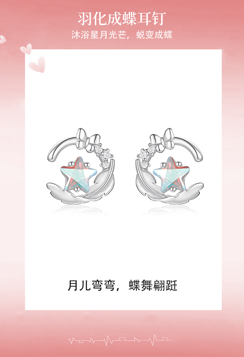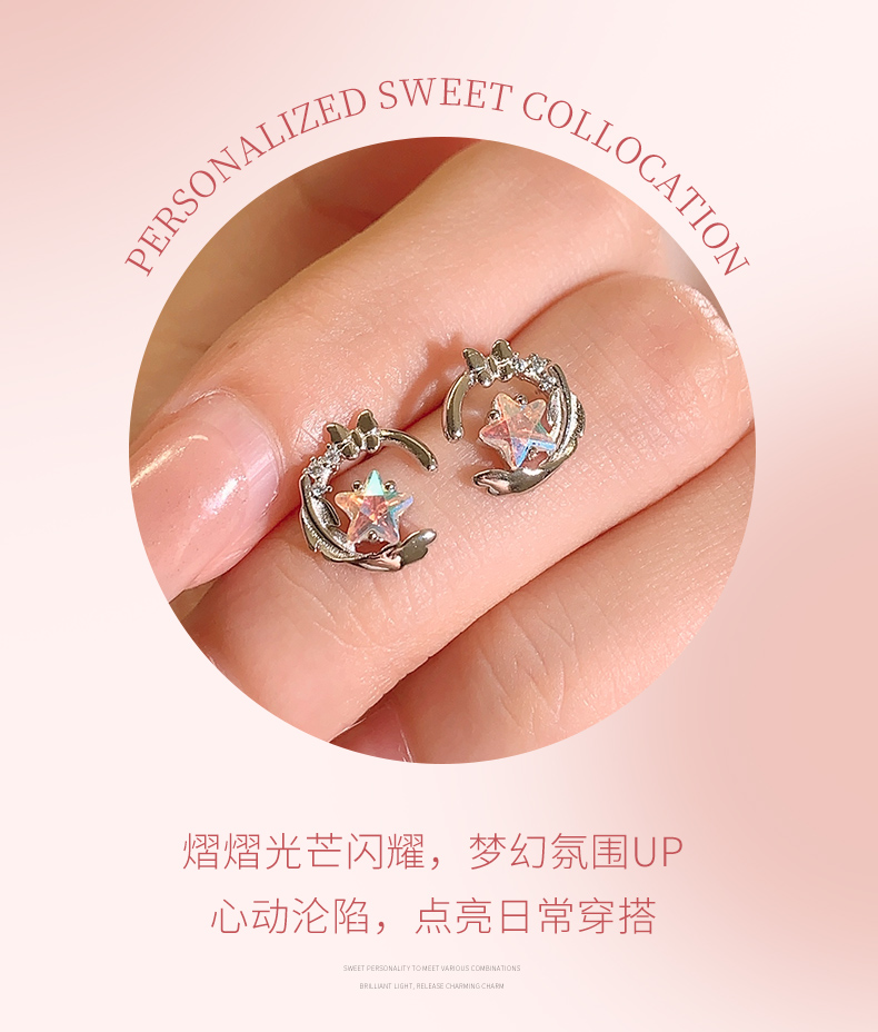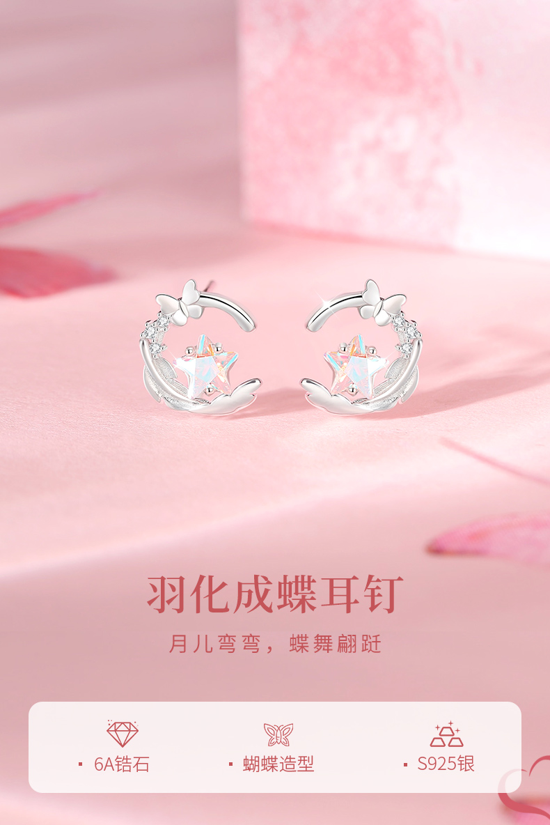卡蒂罗KADER 羽化成蝶耳钉 闪耀银河时尚小众五角星设计梦幻浪漫精致配饰 甜美少女心灵动吸睛