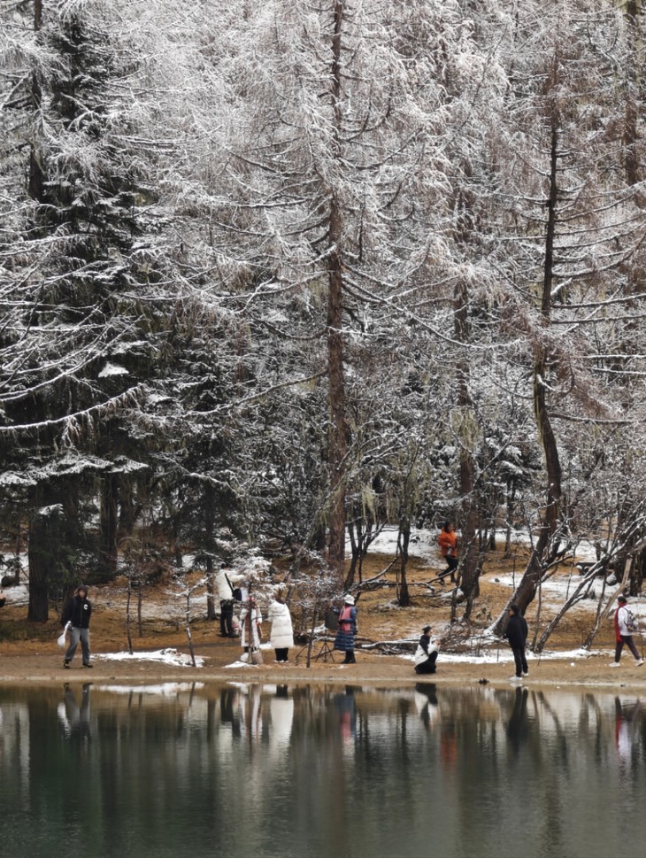 从景区游客中心乘坐景区观光车,沿着山路一直上山,到达龙王海。这时候的海子是最翠绿的,想要拍冬季雾凇和绿色湖水结合,这里是极好的选择,旁边的丛林走进去还别有一番暮光之城的感觉~