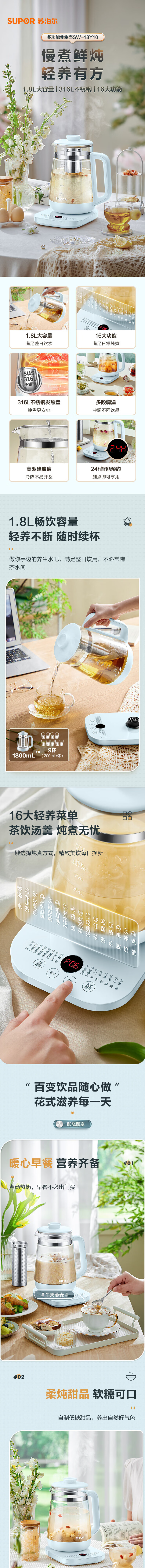 苏泊尔(510494)(SUPOR)养生壶1.8L大容量316L不锈钢多段调温24小时预约烧水壶煮茶壶玻璃电茶壶 SW-18Y10