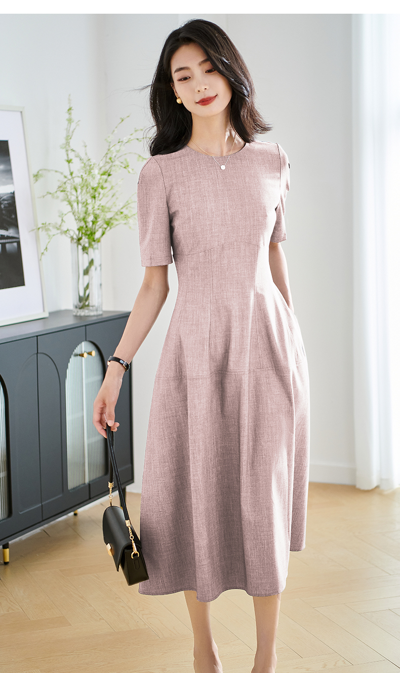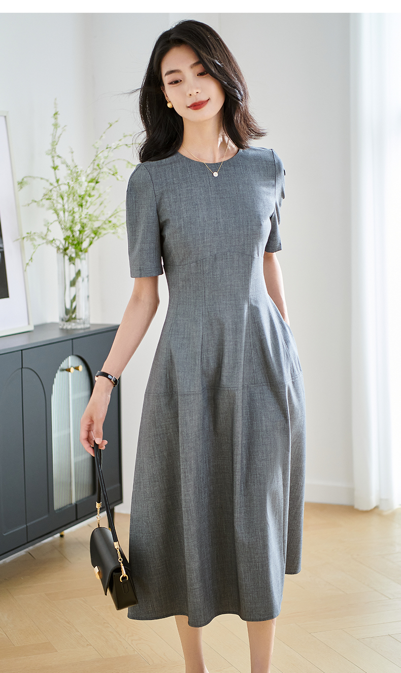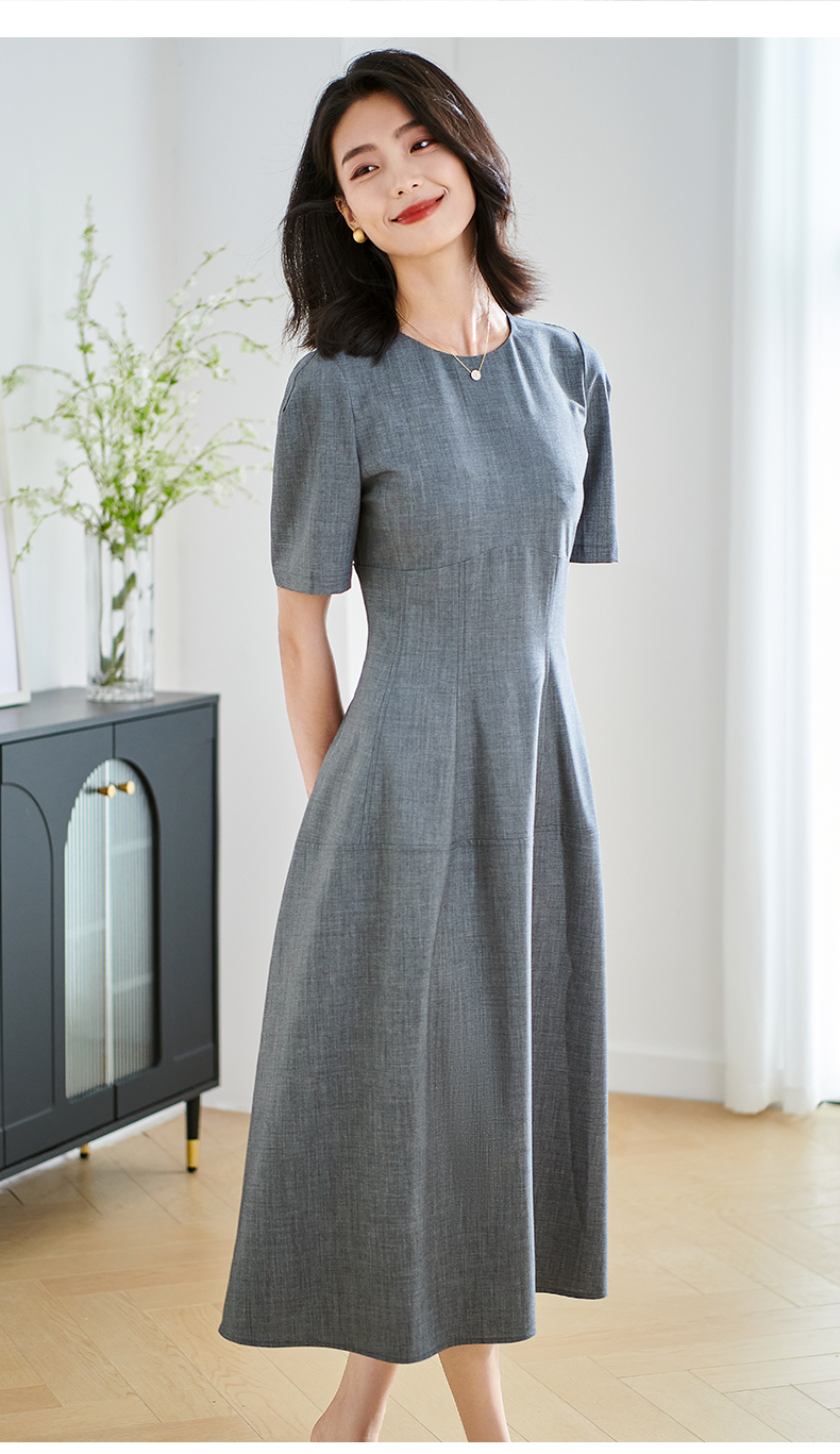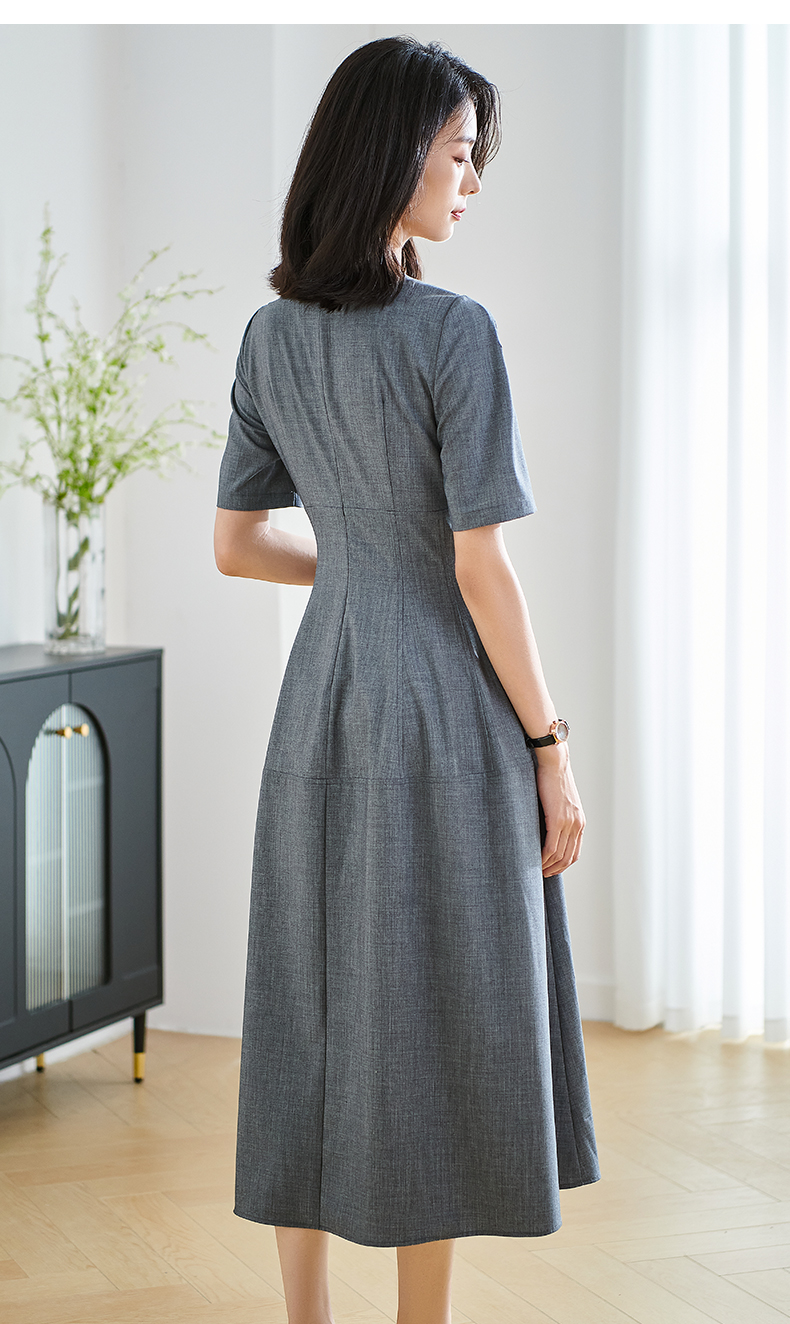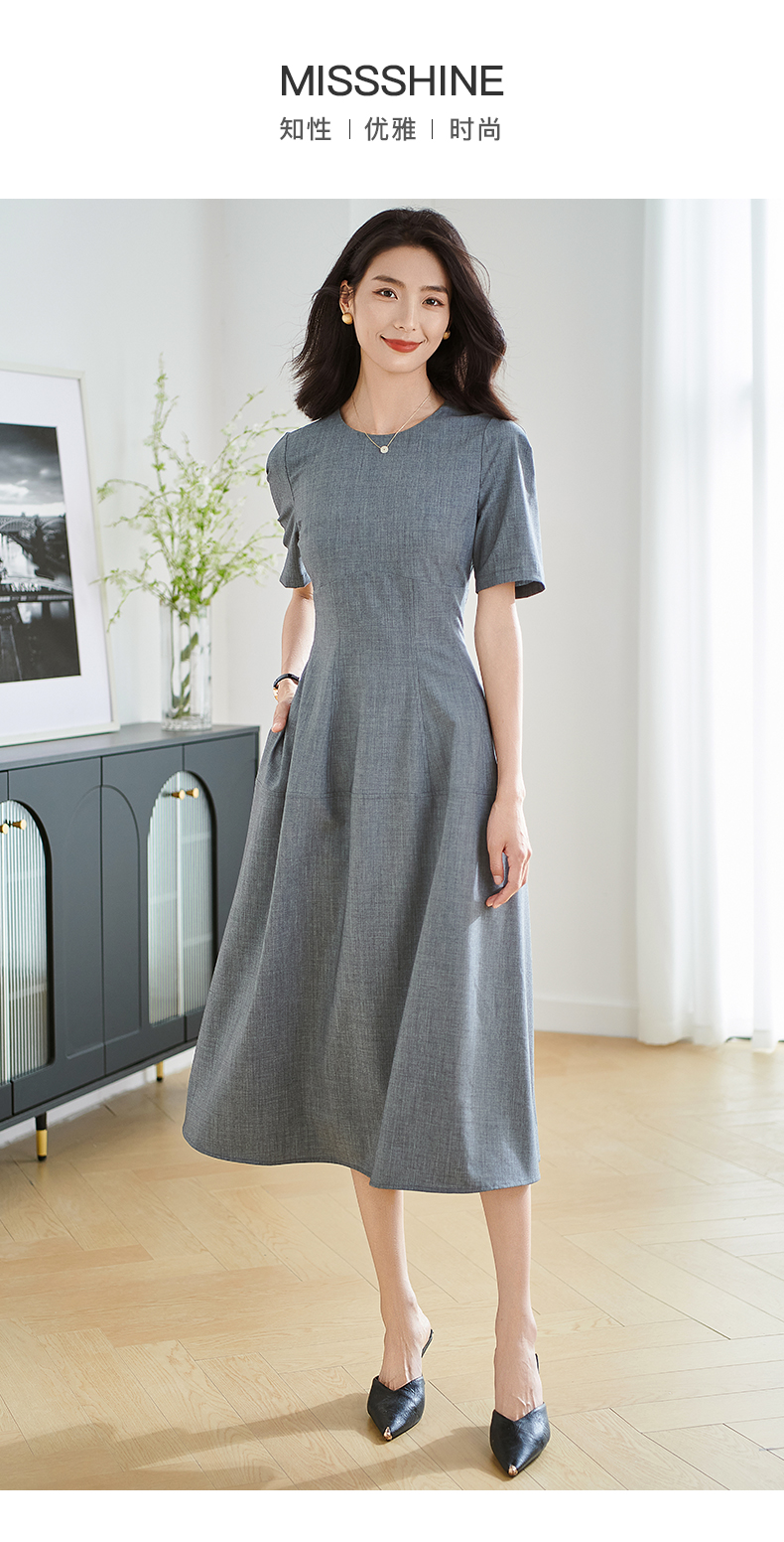 米思阳2025夏季新款极简高级灰OL风连衣裙优雅知性通勤裙子2106