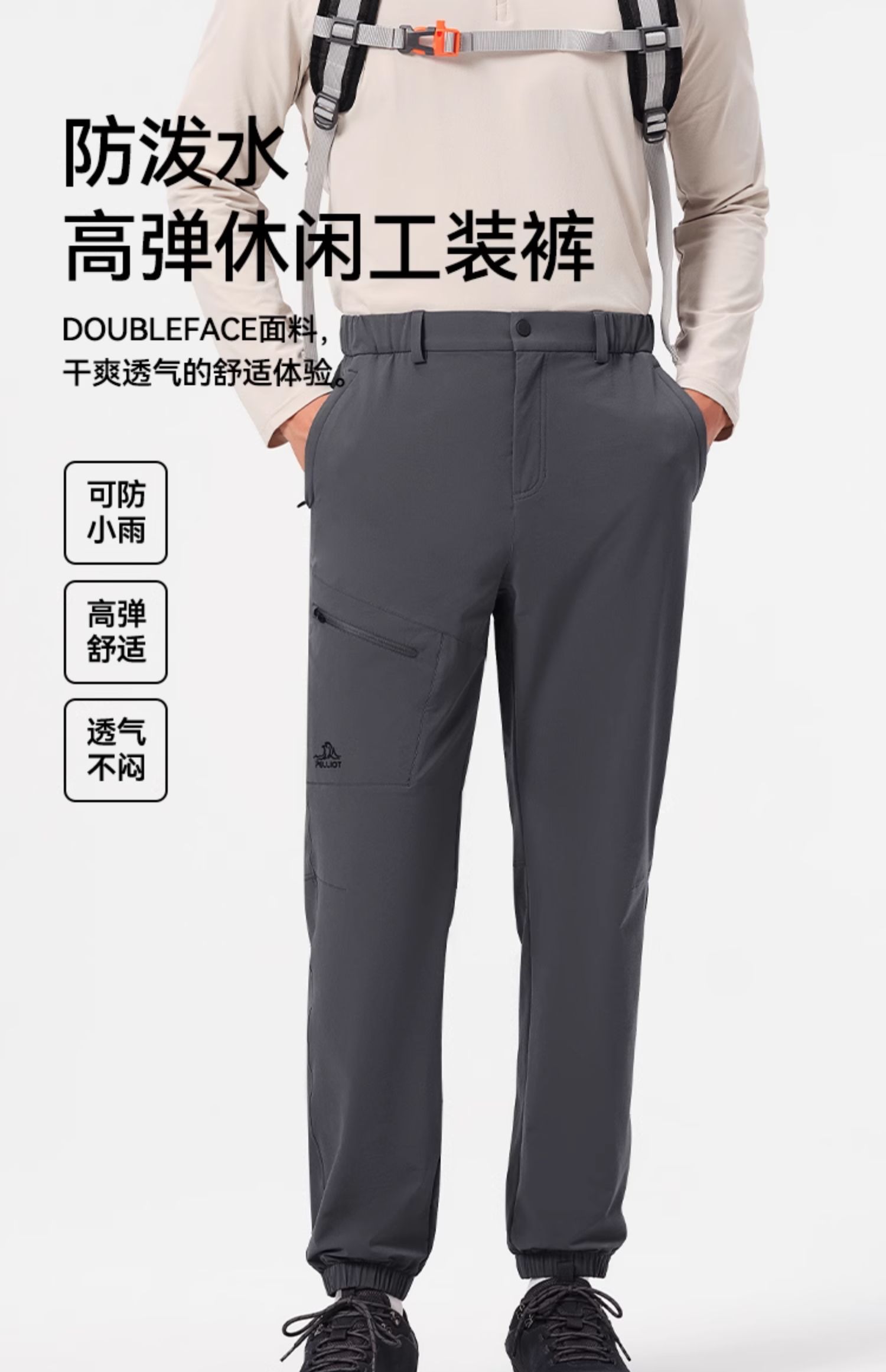 伯希和户外软壳裤男夏季防风防水工装裤高弹透气跑步长裤徒步裤子