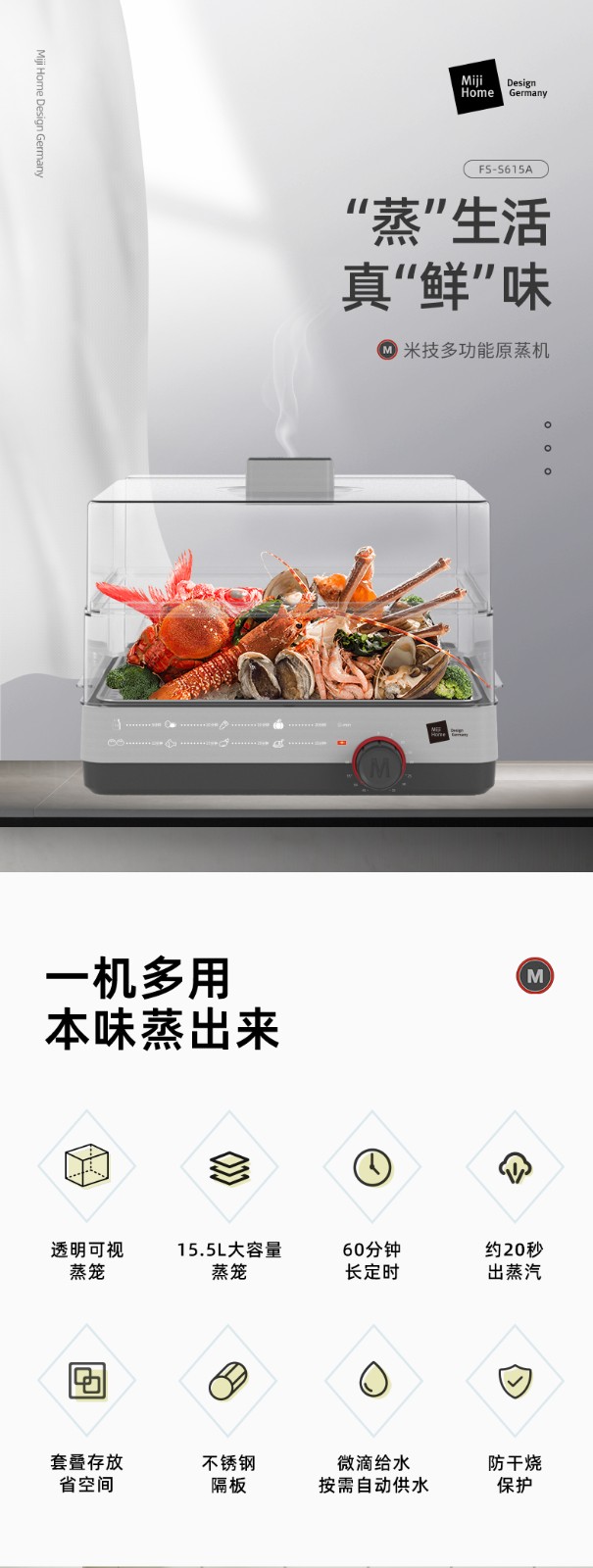 米技 多功能原蒸机(电蒸箱)FS-S615A