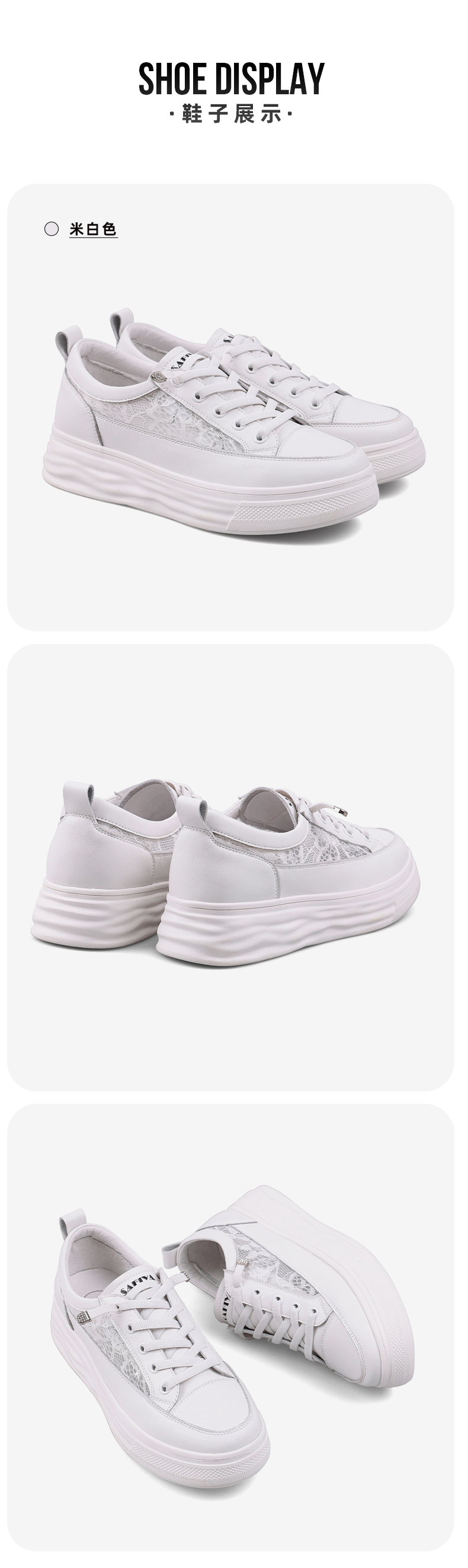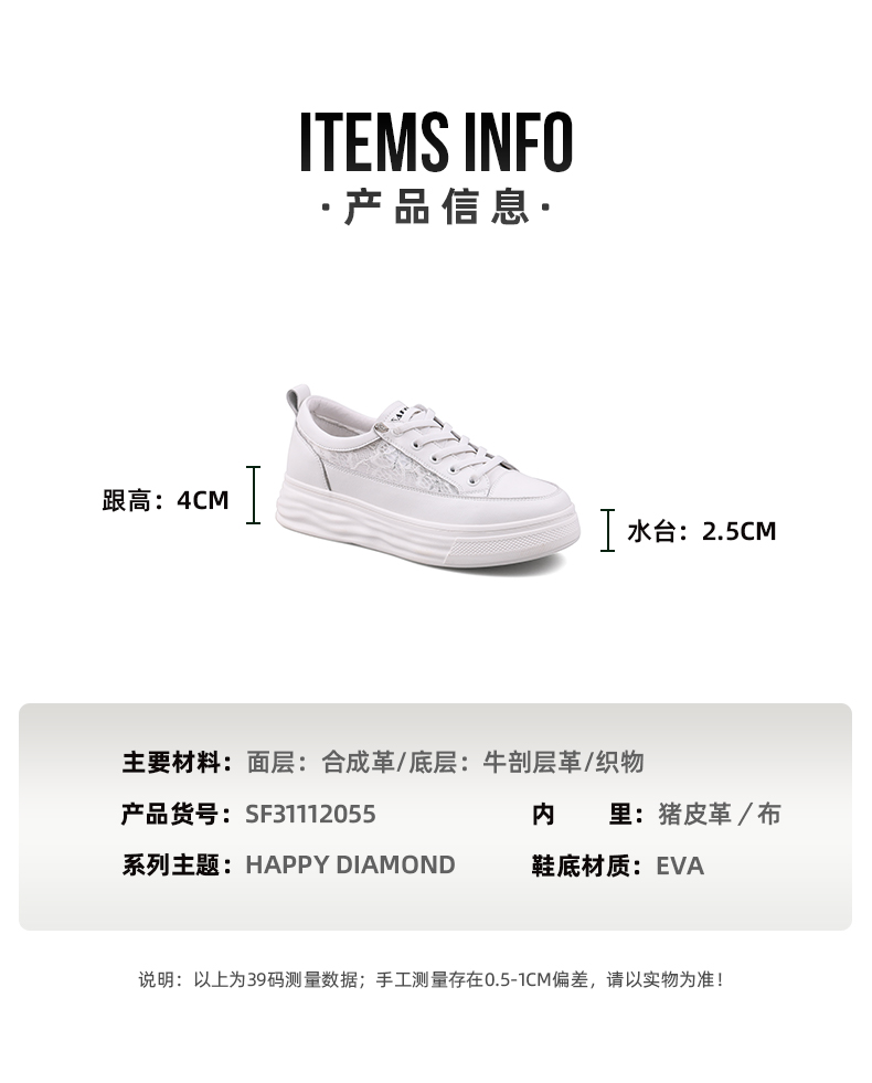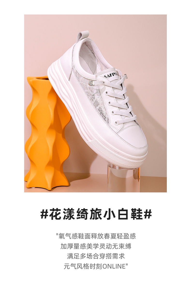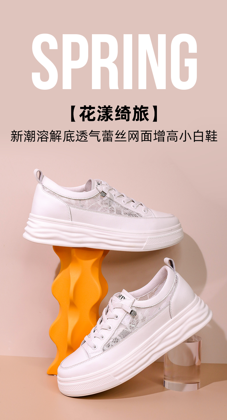 【一件279】Safiya/索菲娅 新潮溶解底2023年春季新款透气蕾丝网面增高小白鞋 SF31112055