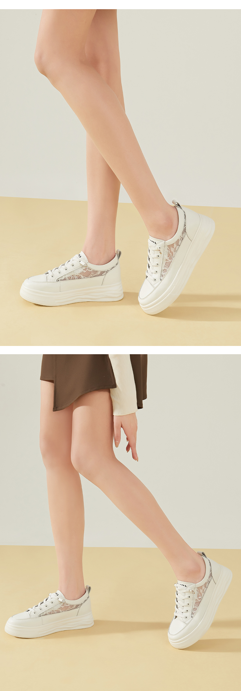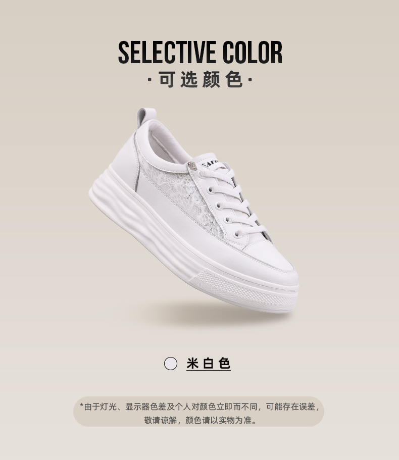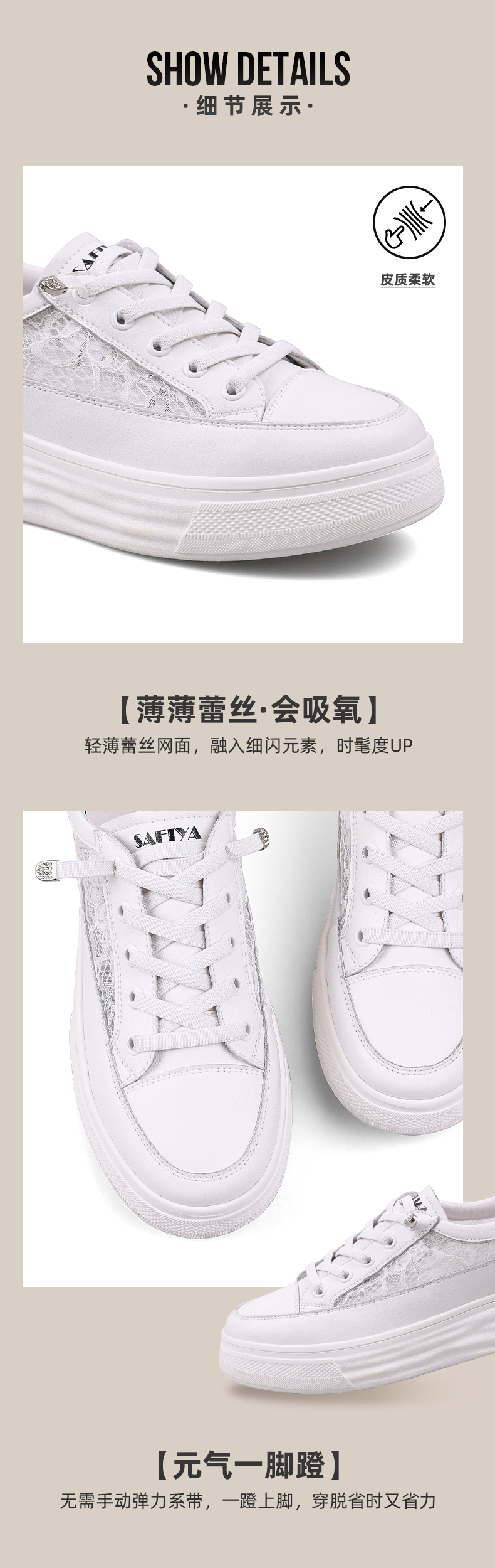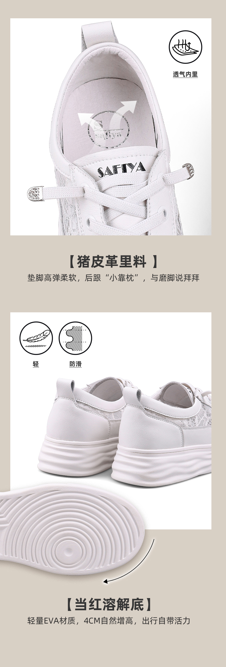 【一件279】Safiya/索菲娅 新潮溶解底2023年春季新款透气蕾丝网面增高小白鞋 SF31112055