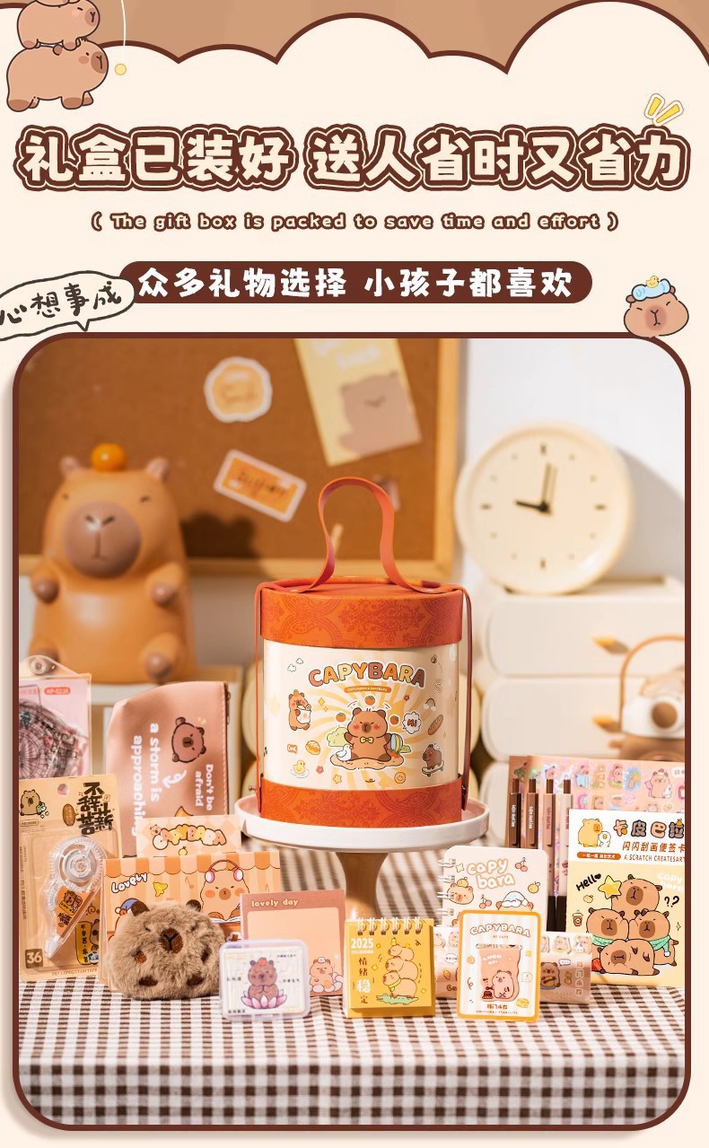 「文具抱抱桶」文具套装卡皮巴拉抱抱桶学习用品大礼包熊猫礼盒套装学生奖品礼物