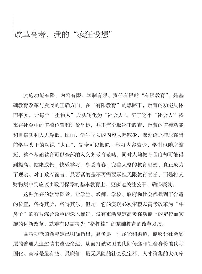 本书内容丰富,涵盖了基础教育、职业教育、特殊教育、教师教育、高考改革等内容,为读者全方位呈现了作者的教育行走与思考,为广大教育界人士以及关心教育的所有人提供了思考的路径。作者人生经历丰富,既做过教育副厅长又当过研究室主任、大学校长,丰富的教育经历,为其文字注入了思考的灵魂,让他的思考更接地气,更有实践价值。