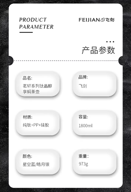 飞剑茗轩钛晶醇享焖茶壶1800mlTP-180-26A