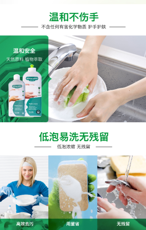 家庭清洗:滴适量(0.5-1ml)于湿润海绵上,搓出泡沫后刷洗碗碟油垢污渍,清水冲洗干净;