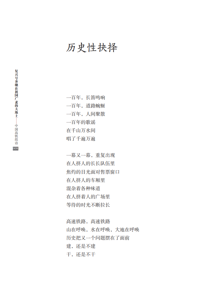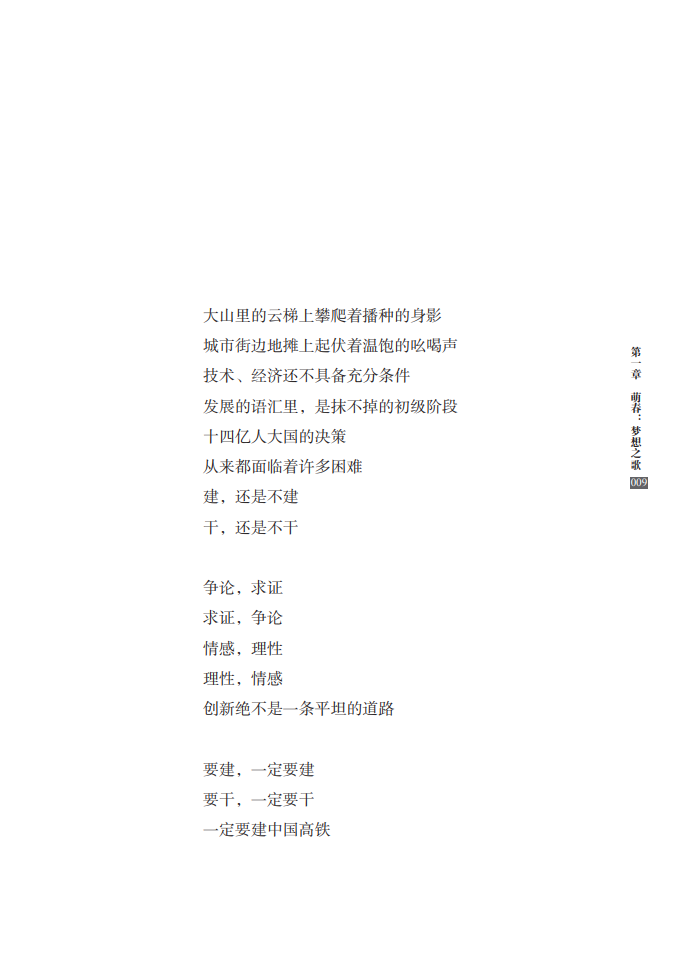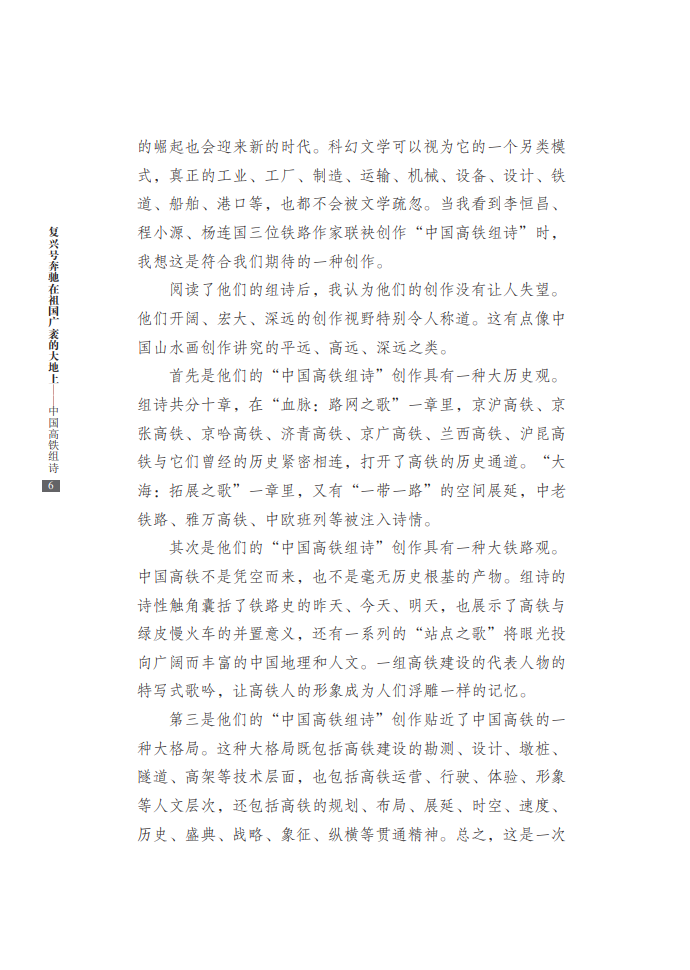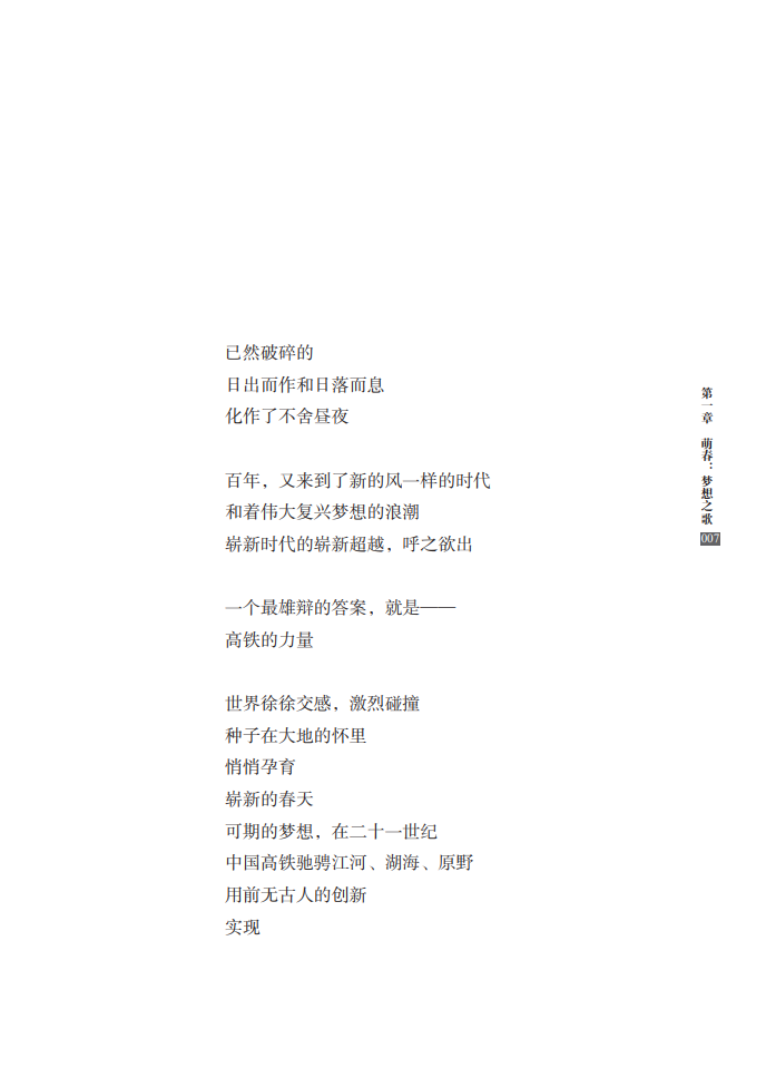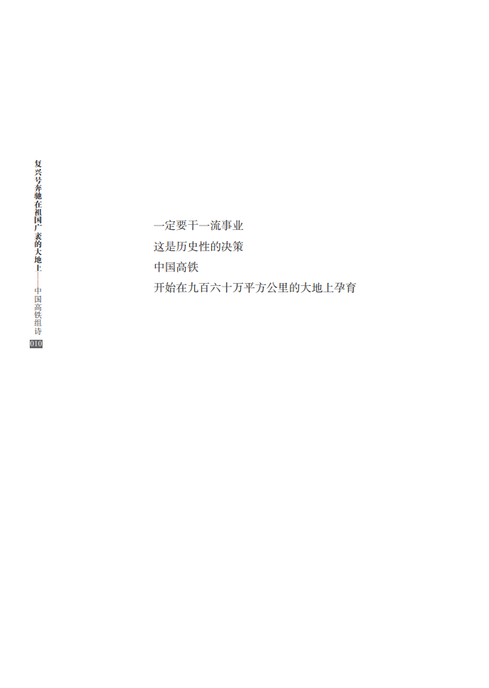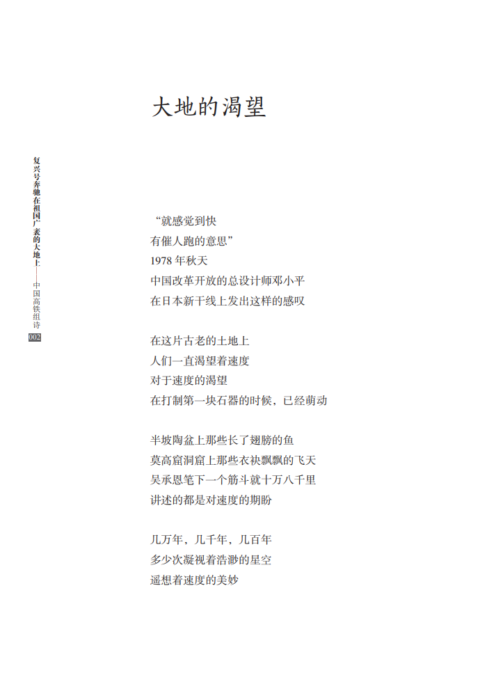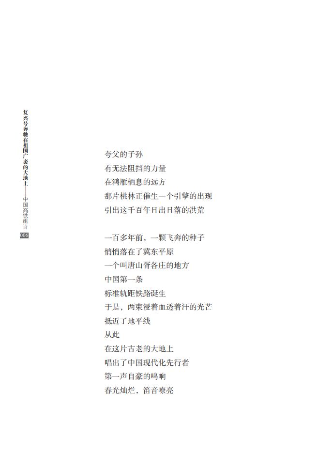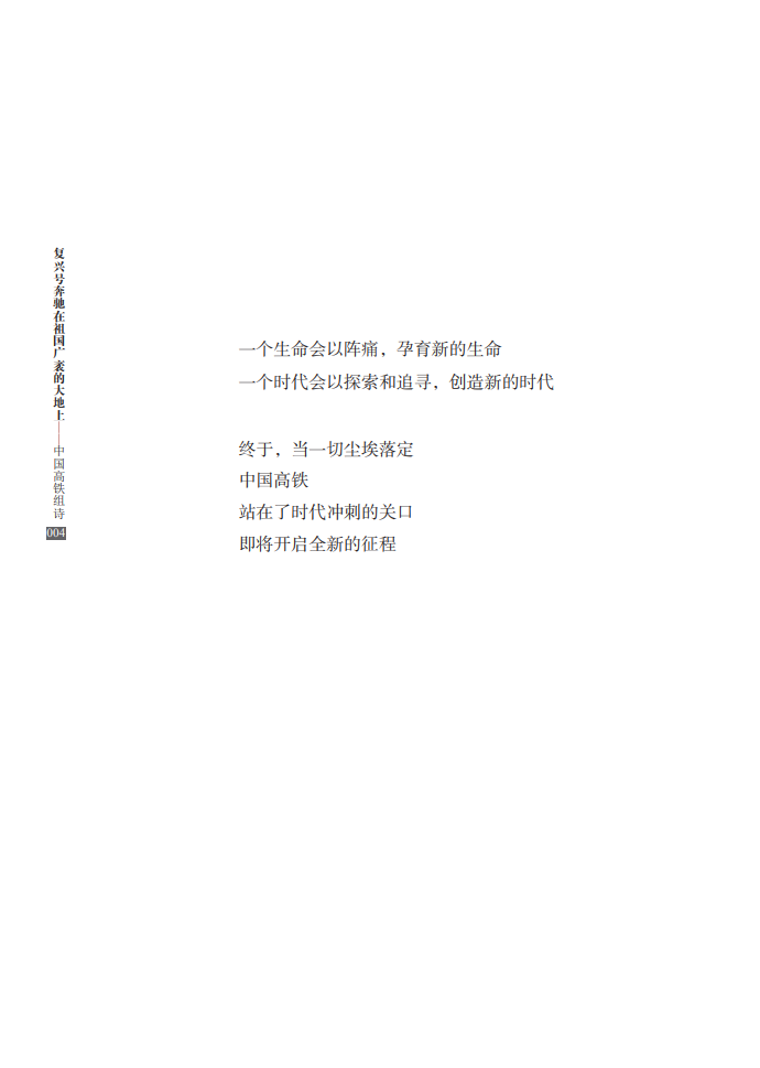 本书共66首诗,由李恒昌、程小源、杨连国三位铁路诗人共同创作完成,著名评论家向云驹先生作序。这部组诗从决策、建设、速度、路网、站点、动车、榜样、改变、拓展、担当等各个方面,全面展现了中国高铁建设的巨大成就,讴歌了新时代日新月异的“中国速度”,赞颂了中国人民的辛勤奉献和创造精神,具有史诗性、人民性和艺术性的高度统一。