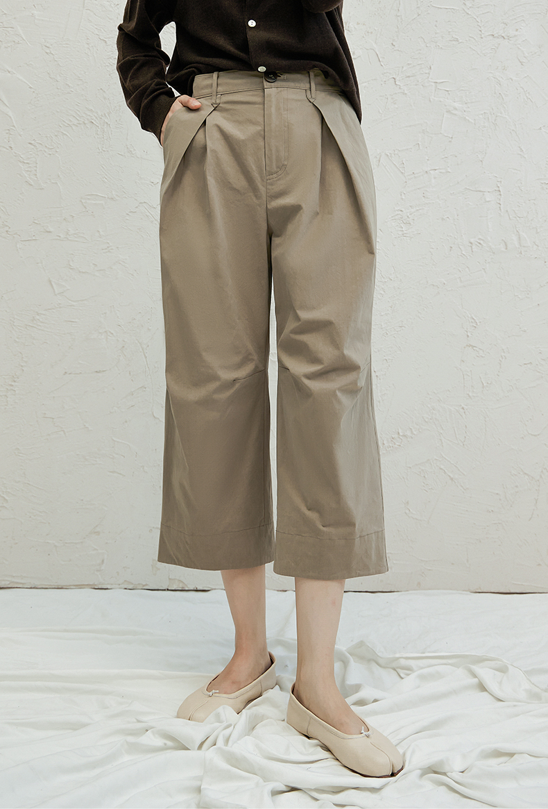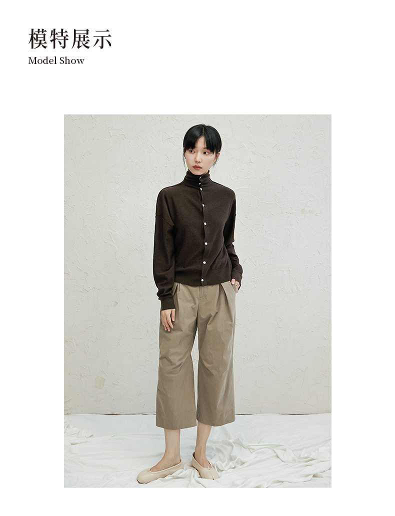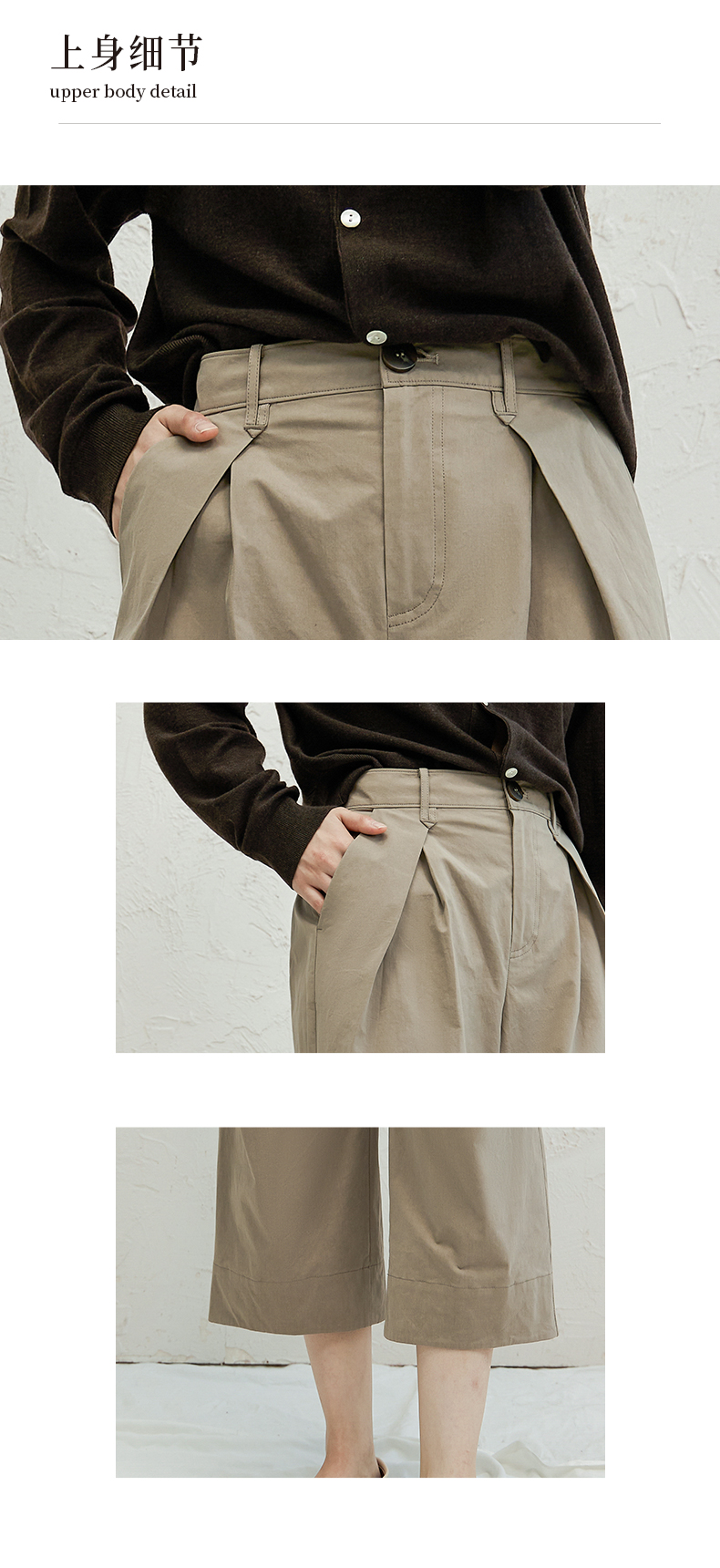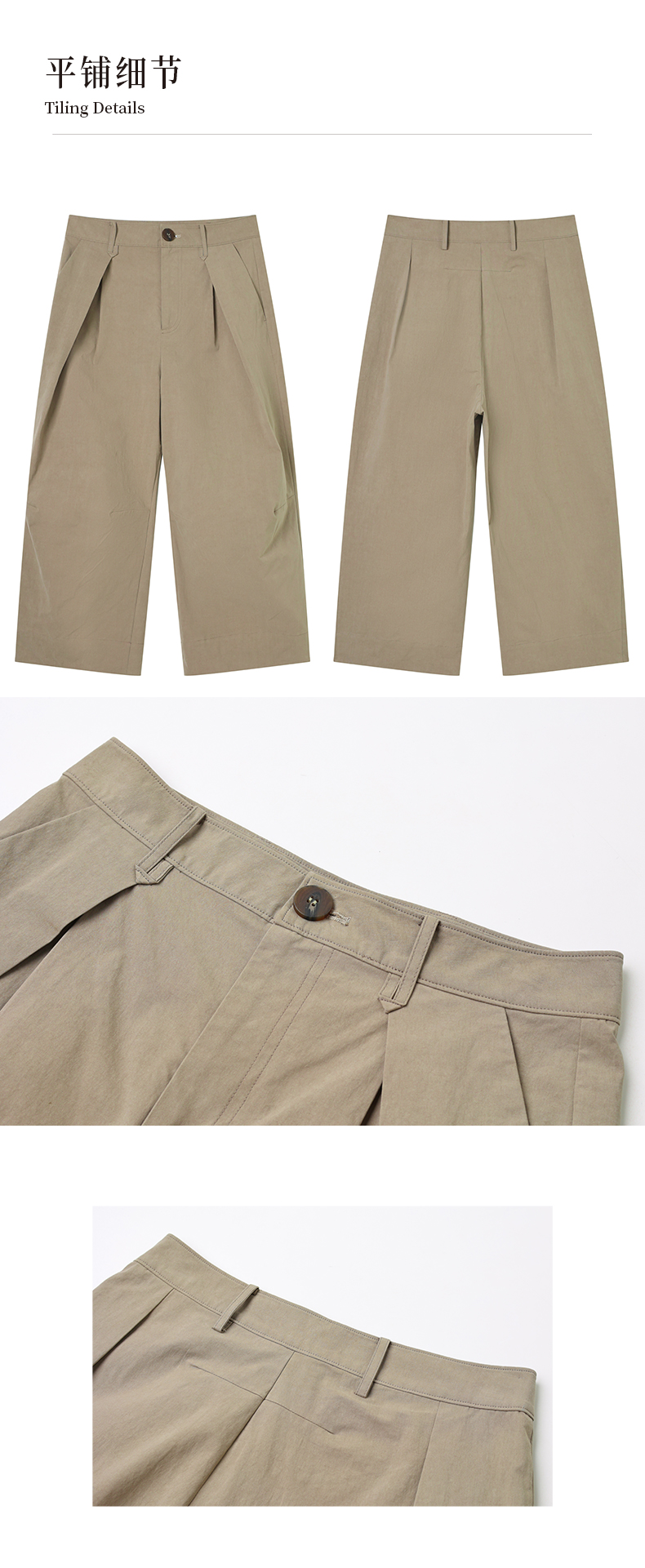 oldcolour简约休闲裤春季新款松紧高腰阔腿直筒长裤女P11073409