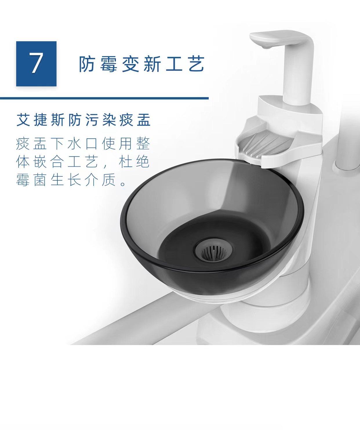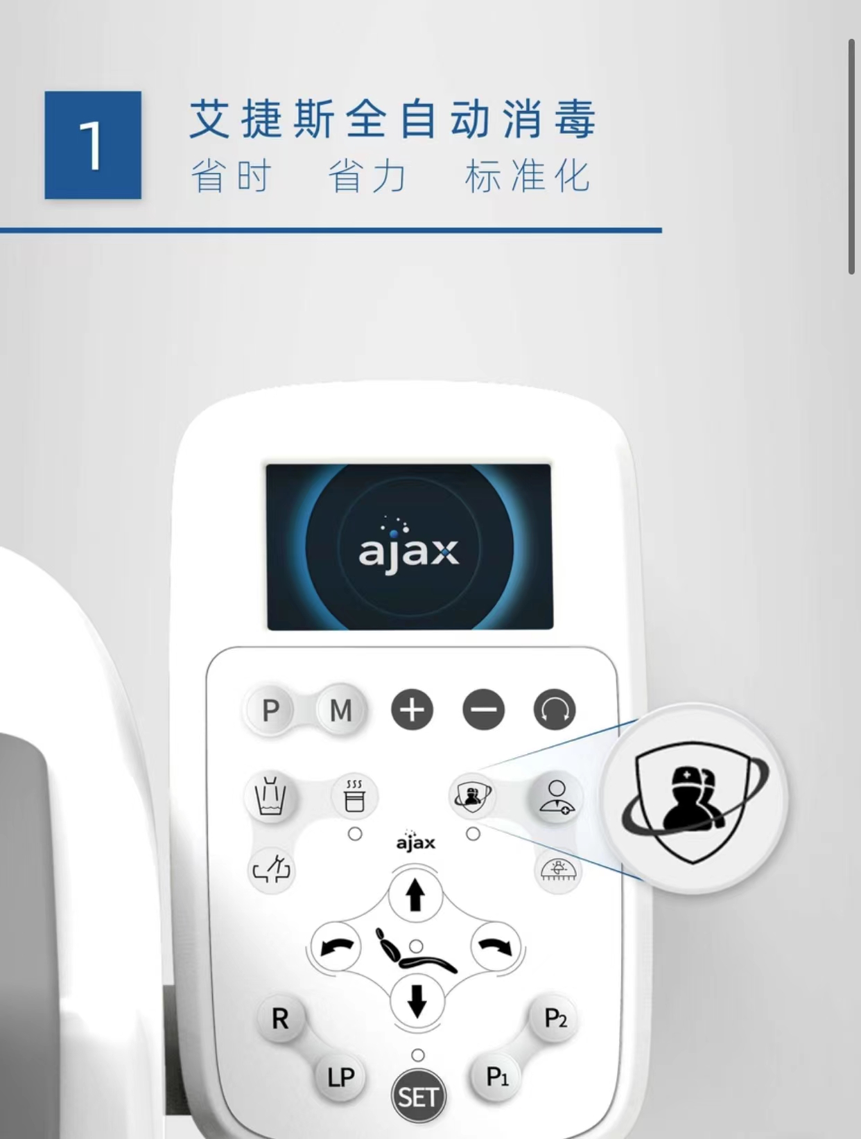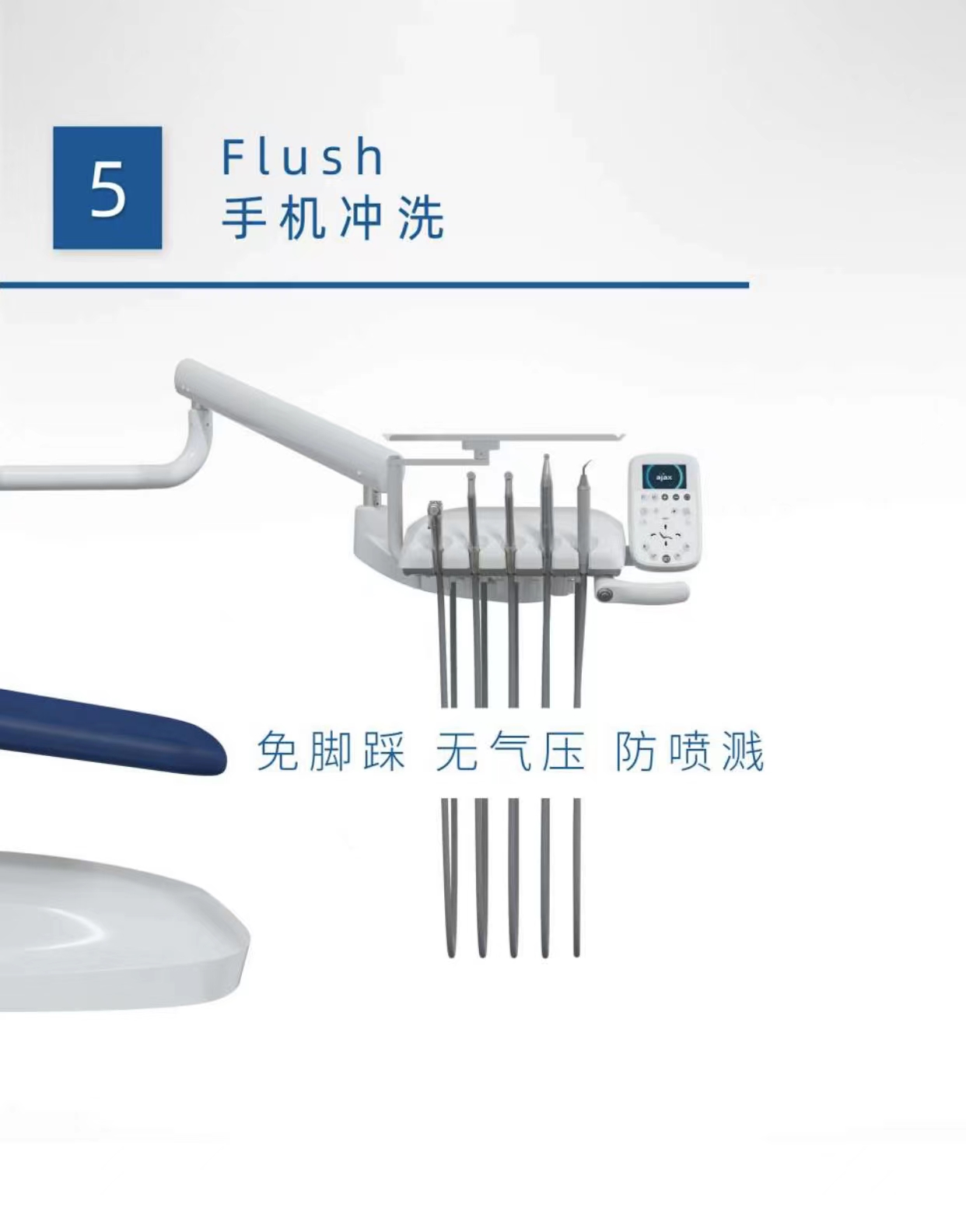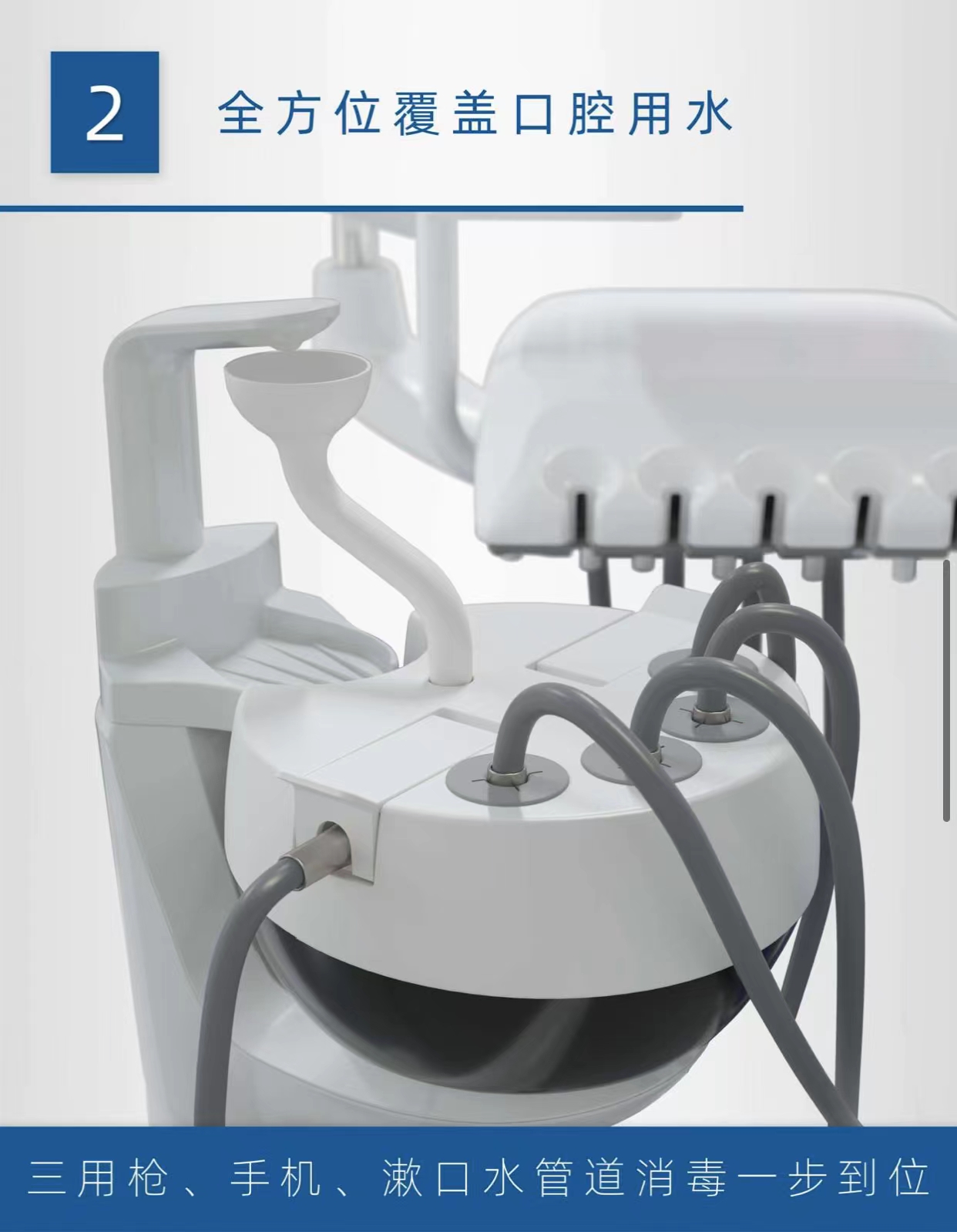 全自动消毒牙椅一键消毒,更有数字智能控制系统,全彩液晶显示屏能准确显示设备故障,用户记忆模式可记录6位医生椅位,综合治疗机中年限最长