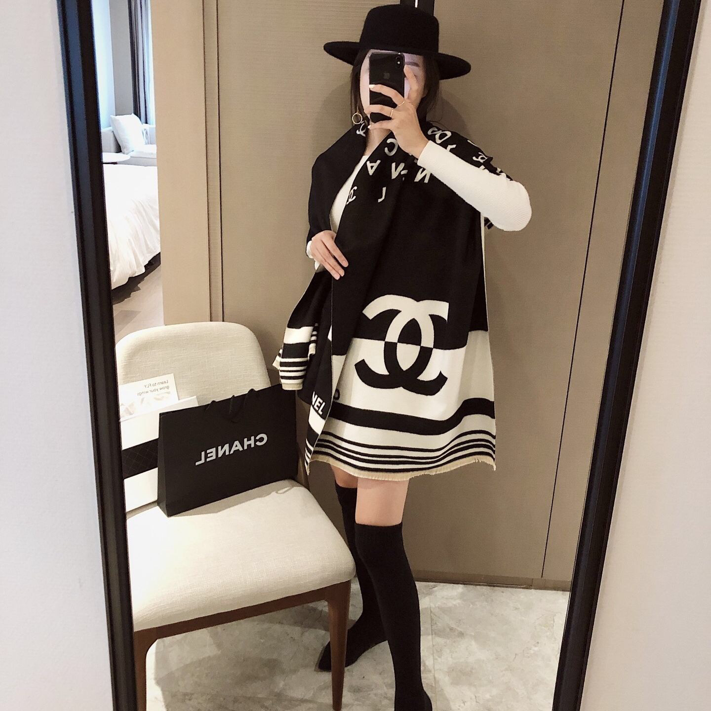 小香家-双C字母提花围巾-会员6折