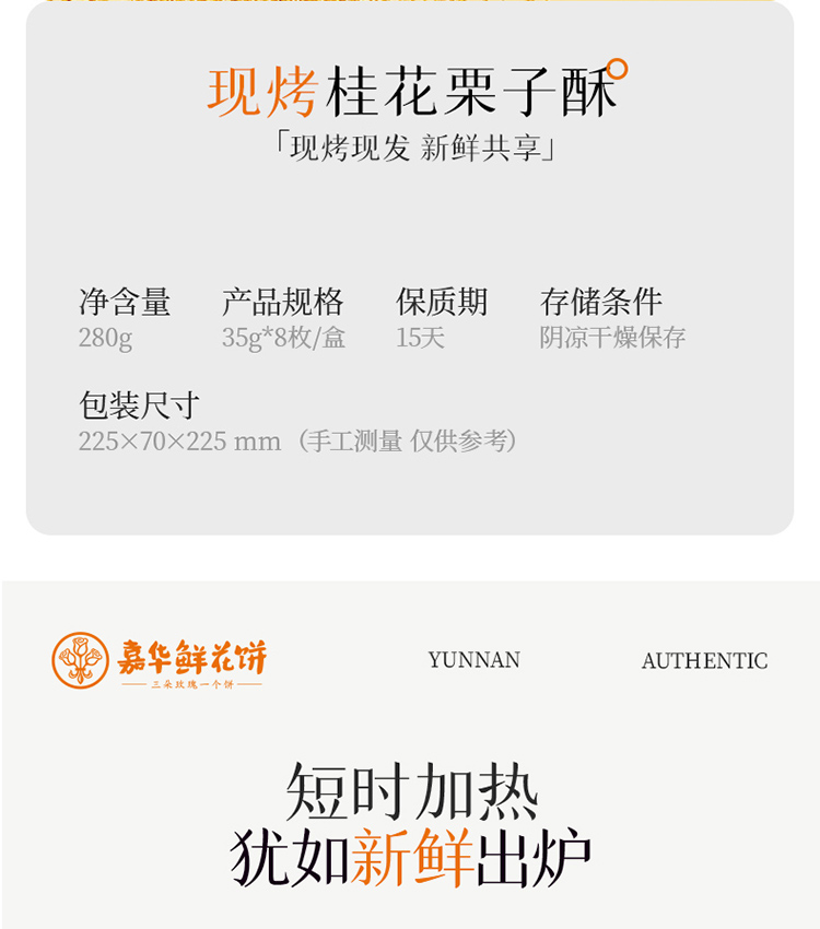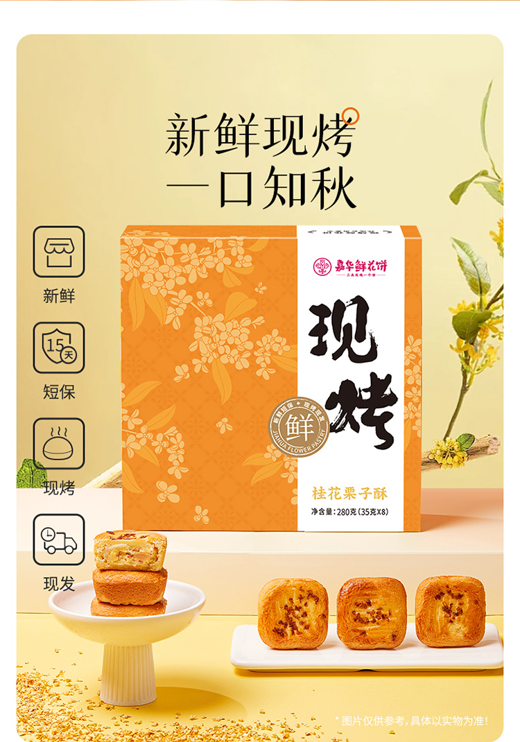 嘉华鲜花饼 现烤桂花栗子酥8枚280g 秋日限定 时令之鲜 短保锁鲜 48小时发货