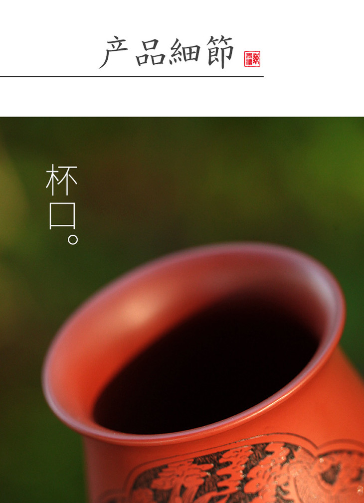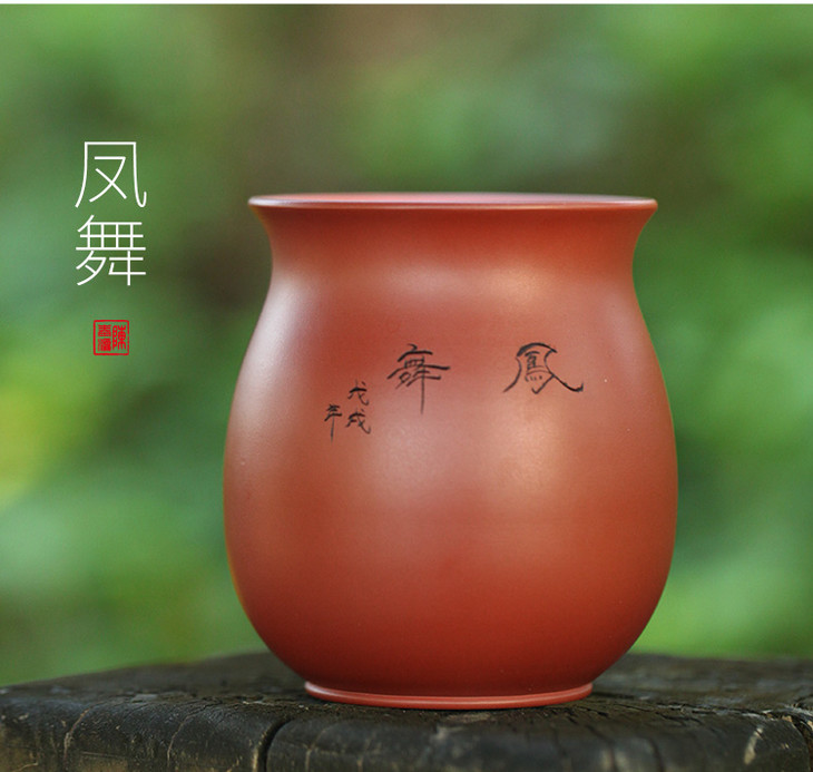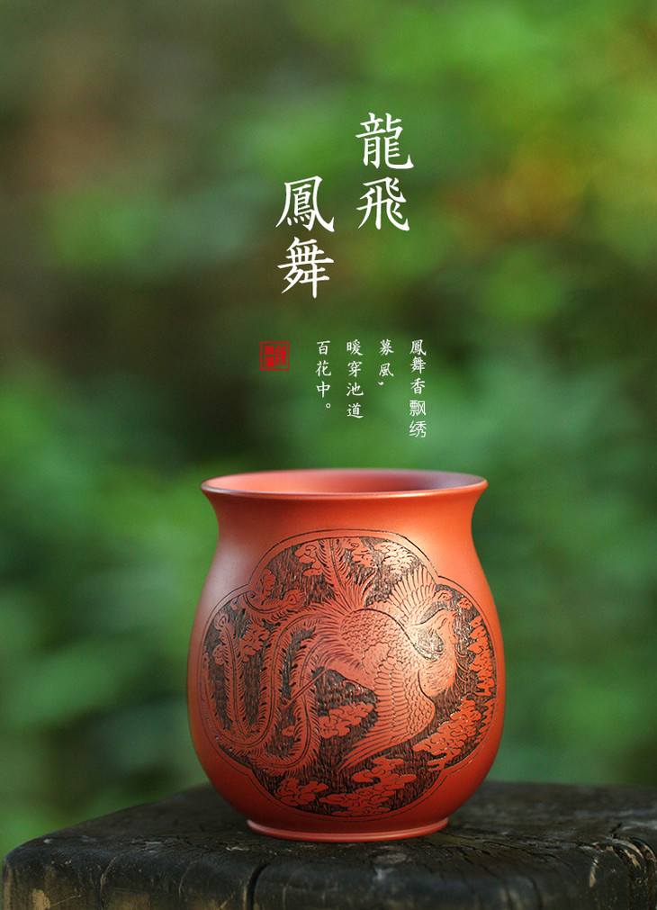 【陈泰源】【腰鼓杯】紫砂陶杯龙飞凤舞