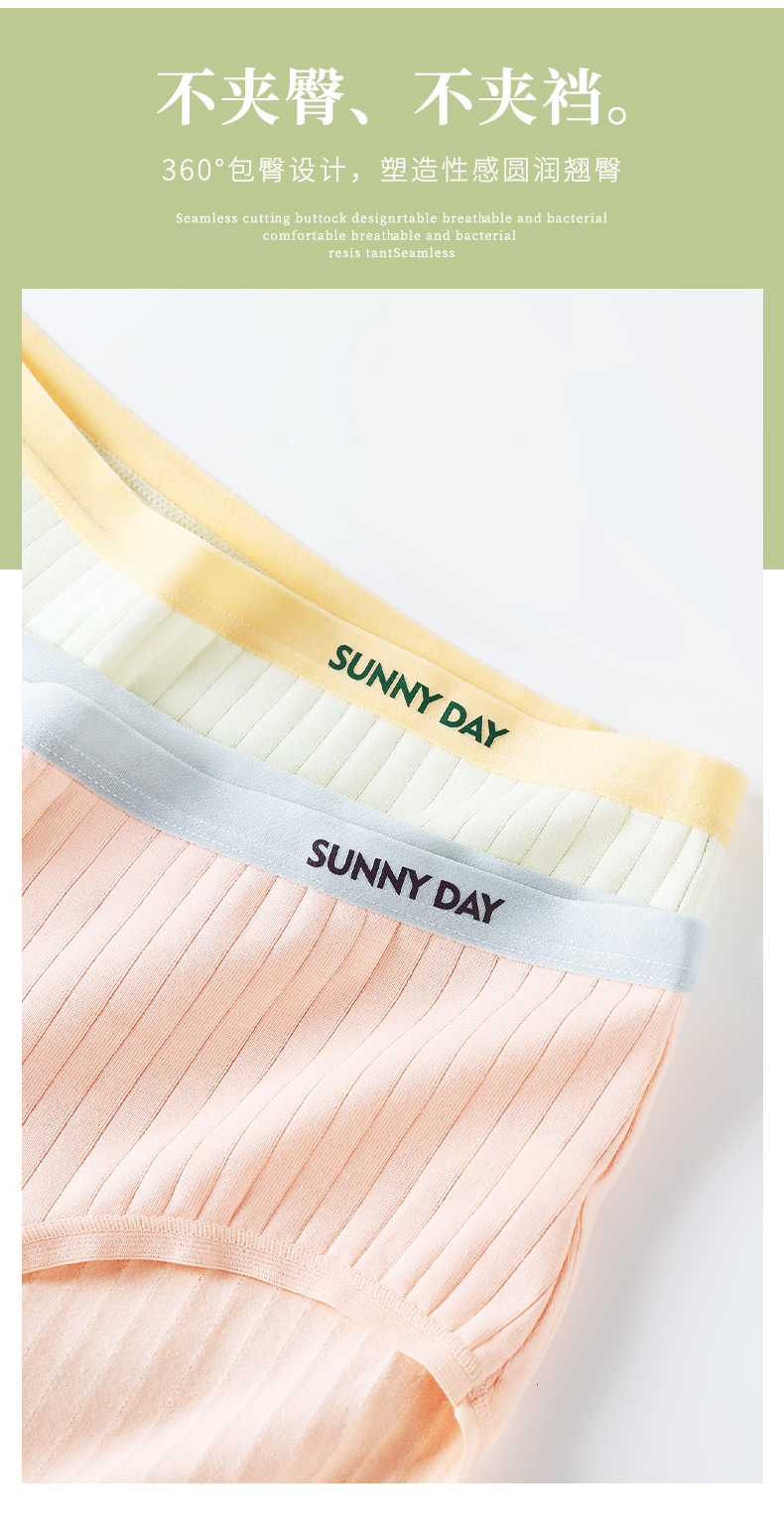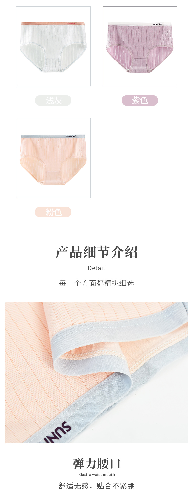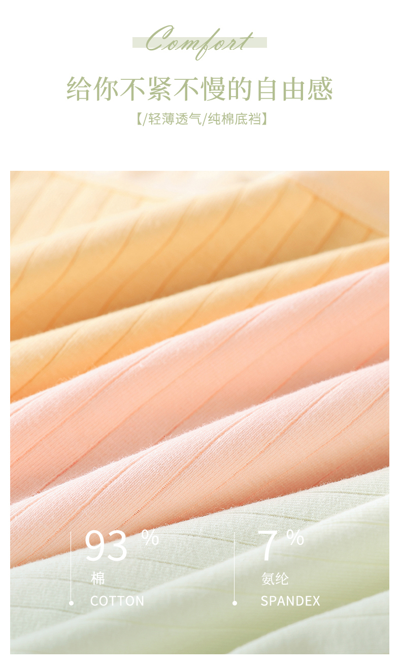 洁丽雅4条装中腰纯棉女士内裤简约条纹纯棉内裆舒适亲肤三角裤女