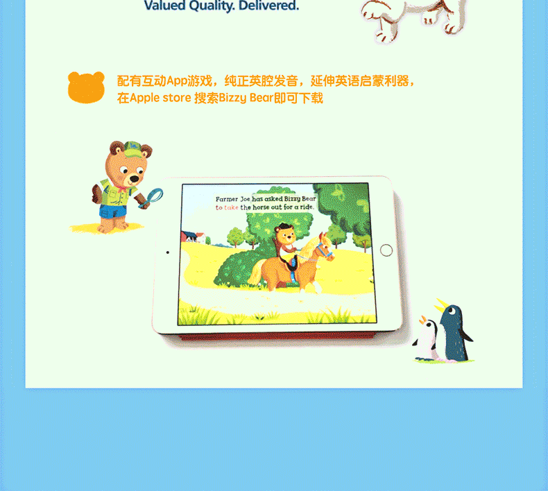 ★配有互动App游戏,可在苹果应用商店(Apple store)下载,纯正英腔发音,延伸英语启蒙利器