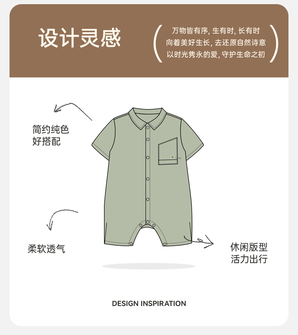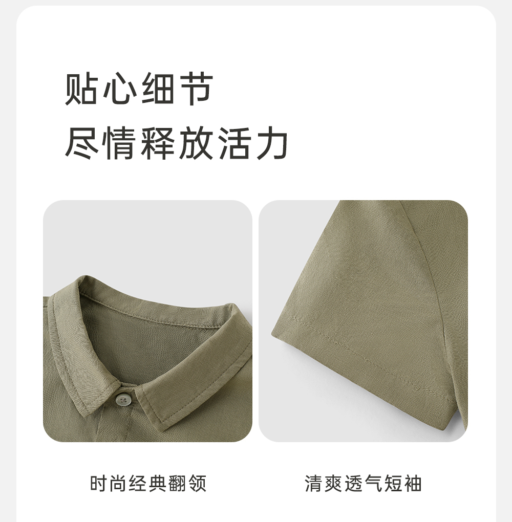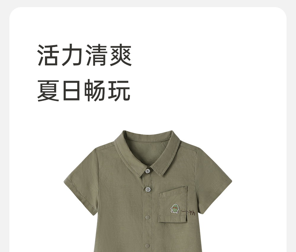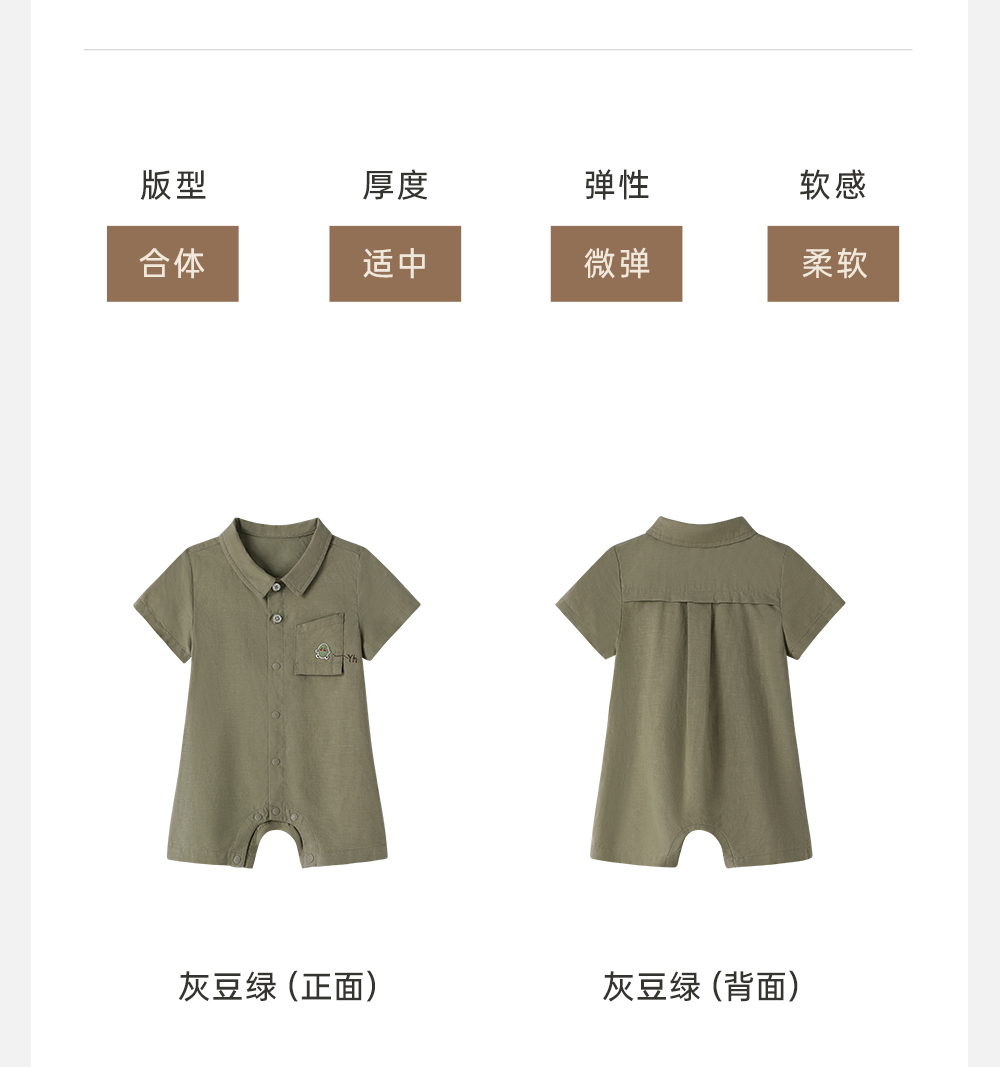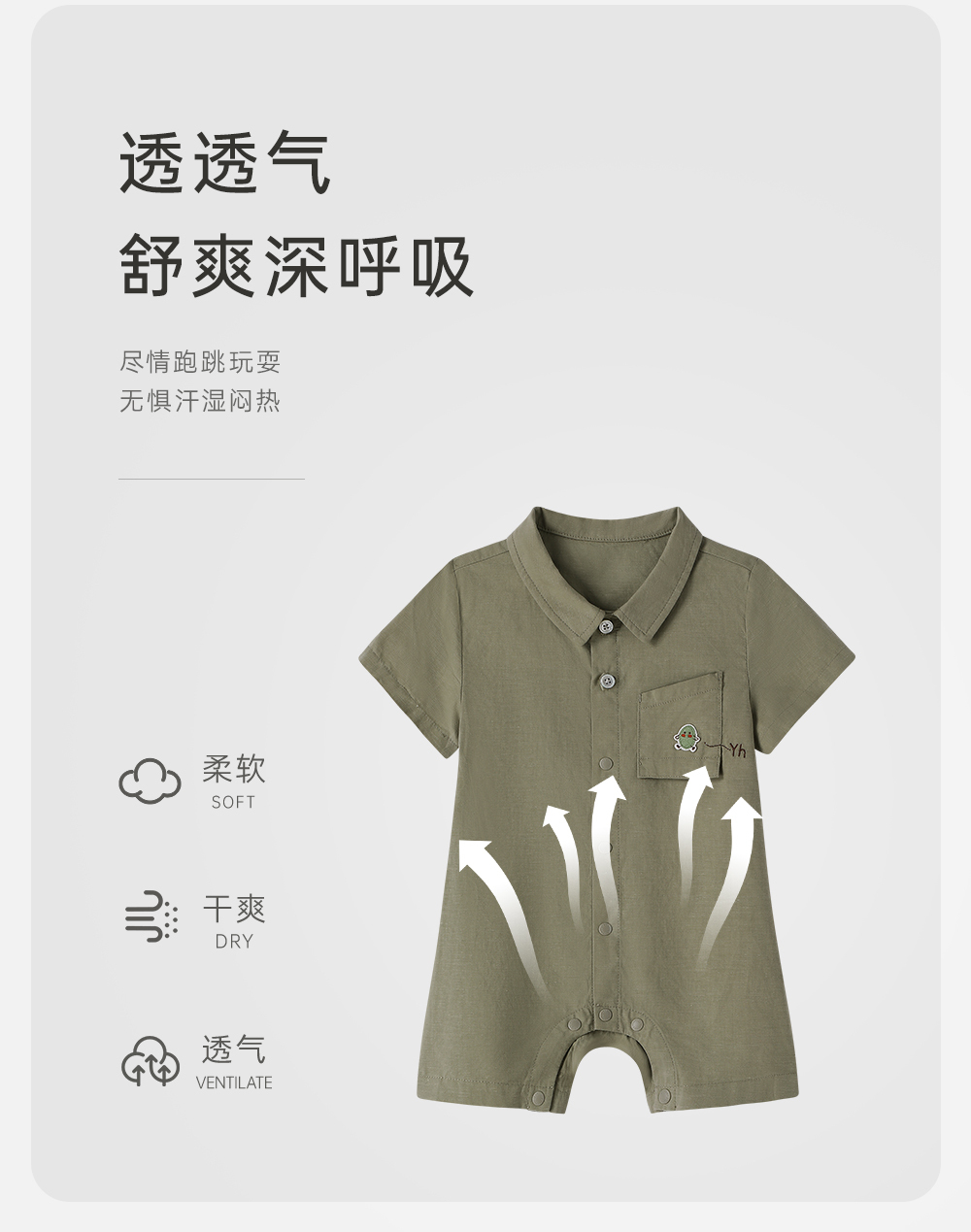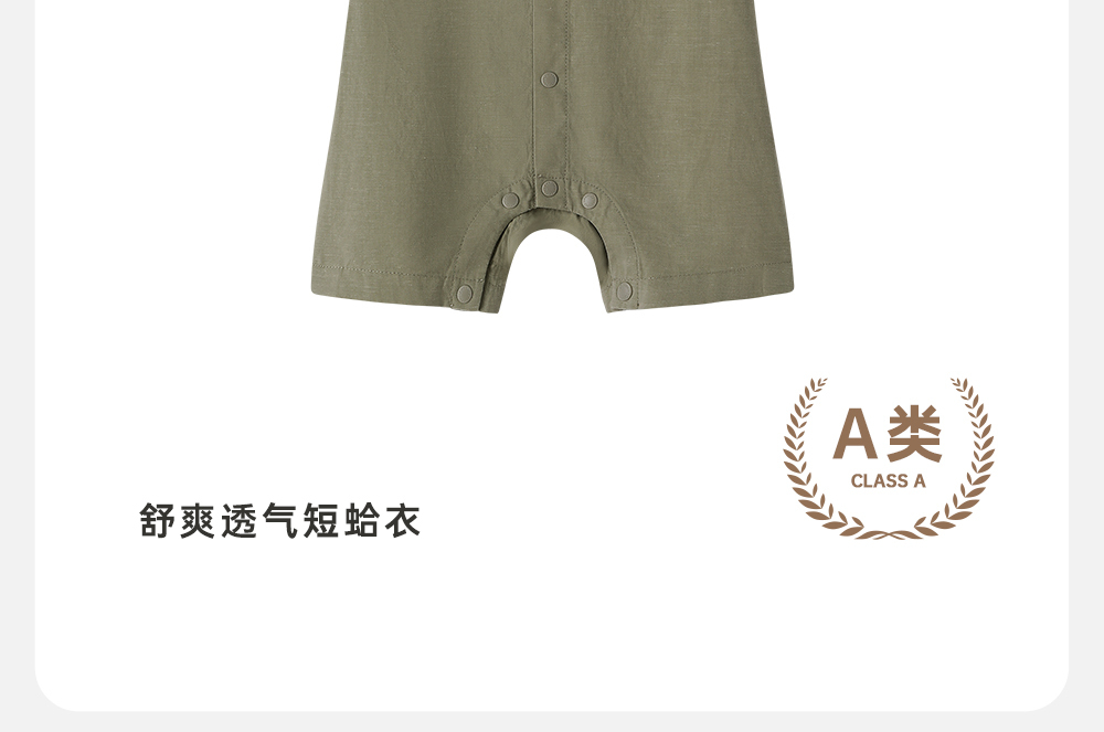 英氏男宝宝连体衣短袖夏装棉麻2024新款夏季婴儿衣服YRHBJ2Q348A
