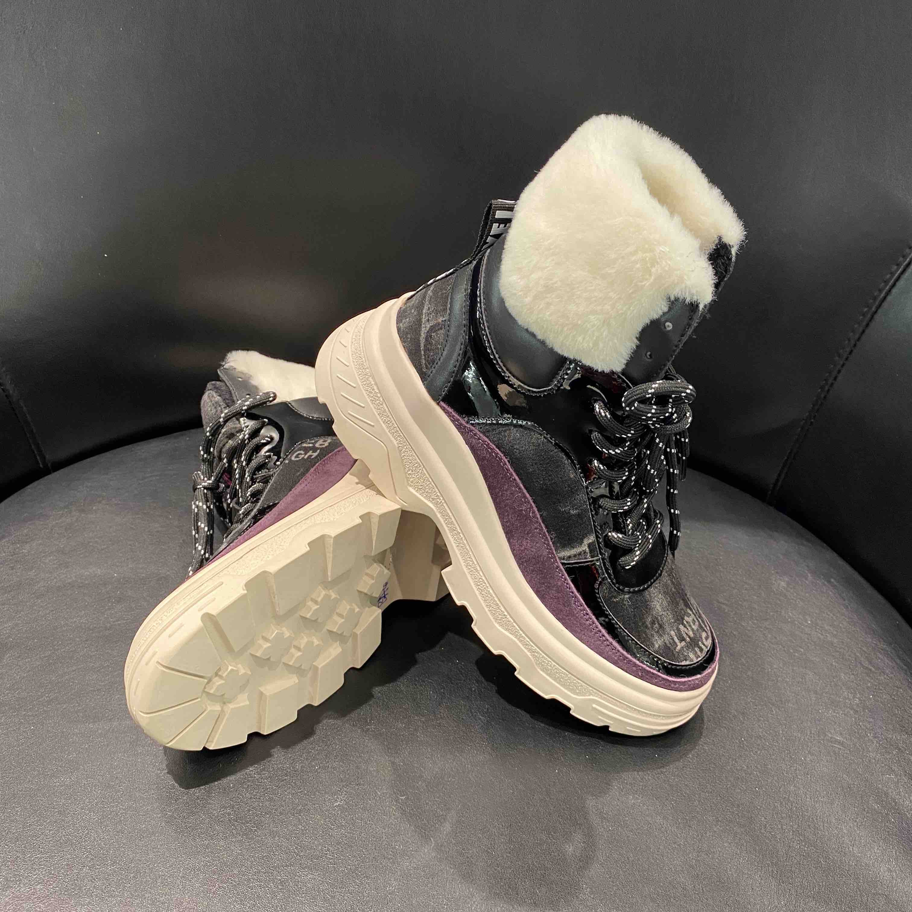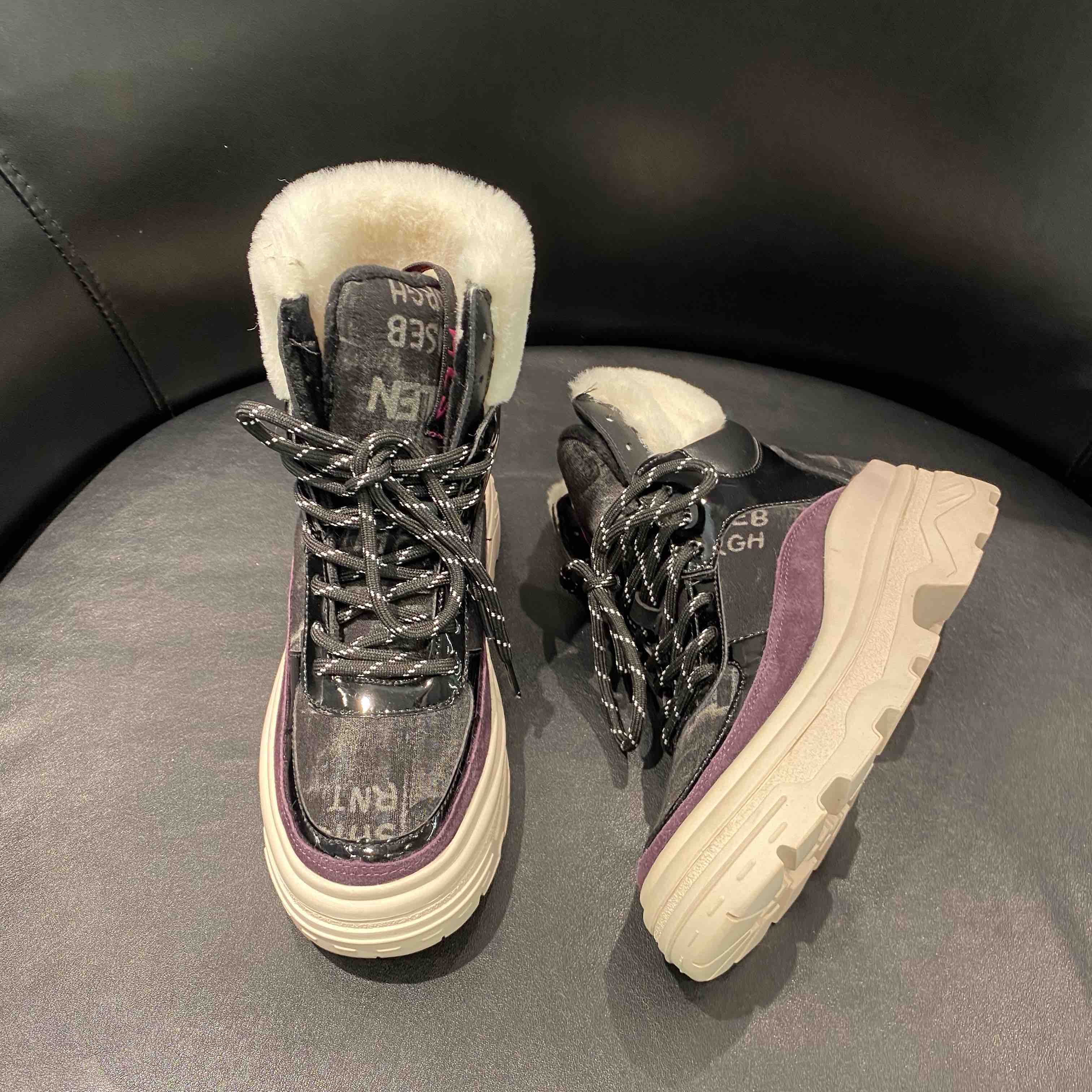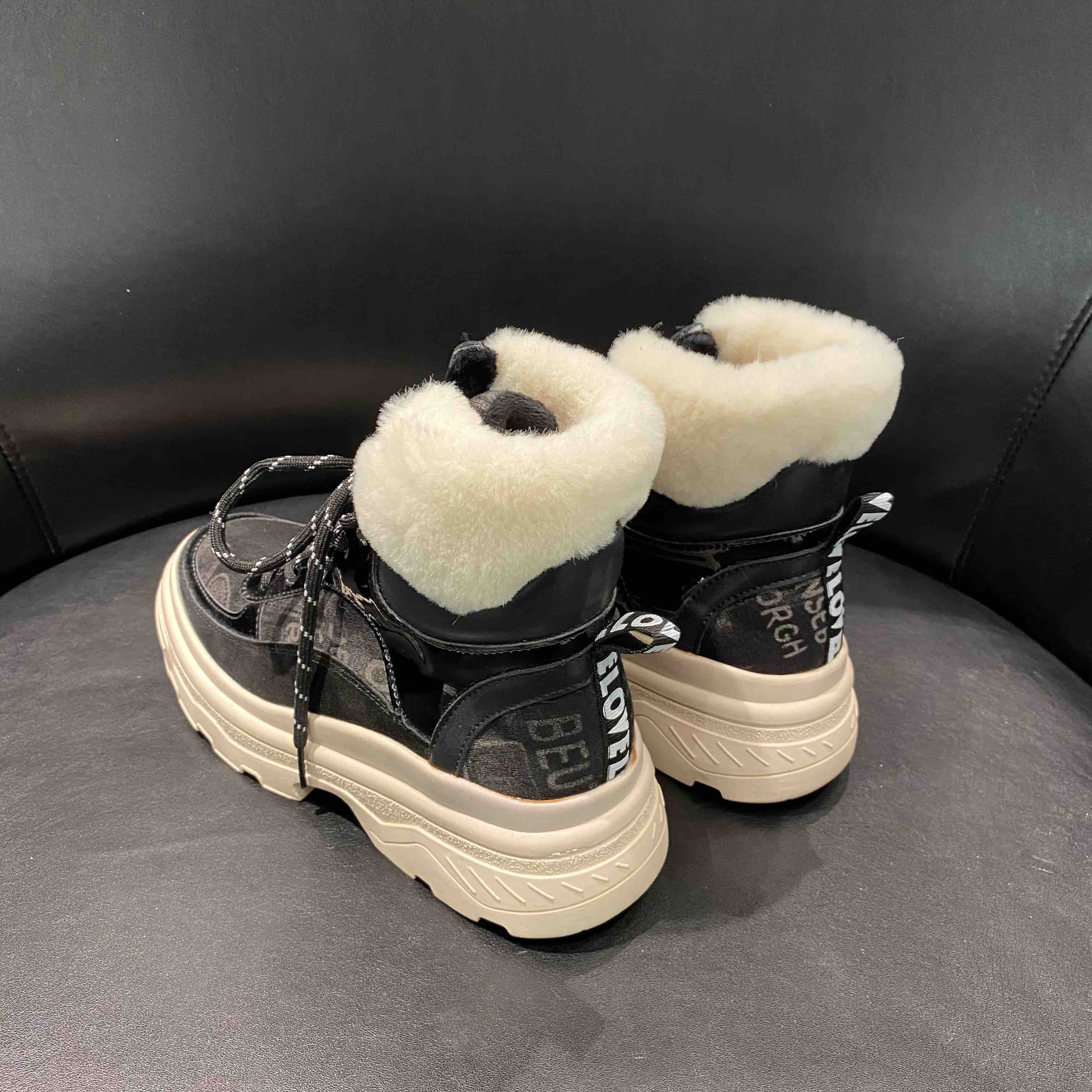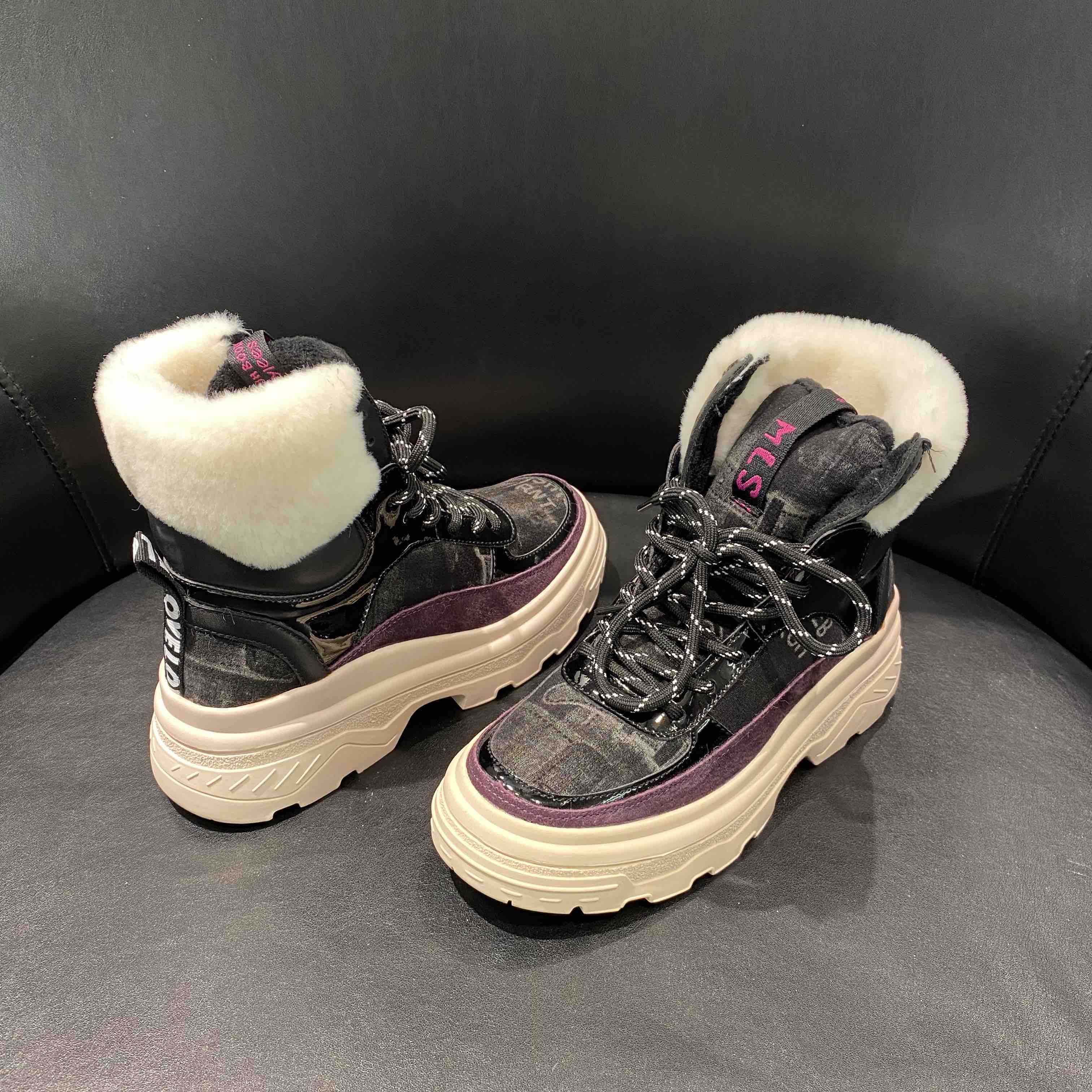 lfgj jeans BA404 平底高帮潮流加绒保暖毛口棉鞋磨砂皮休闲鞋雪地靴