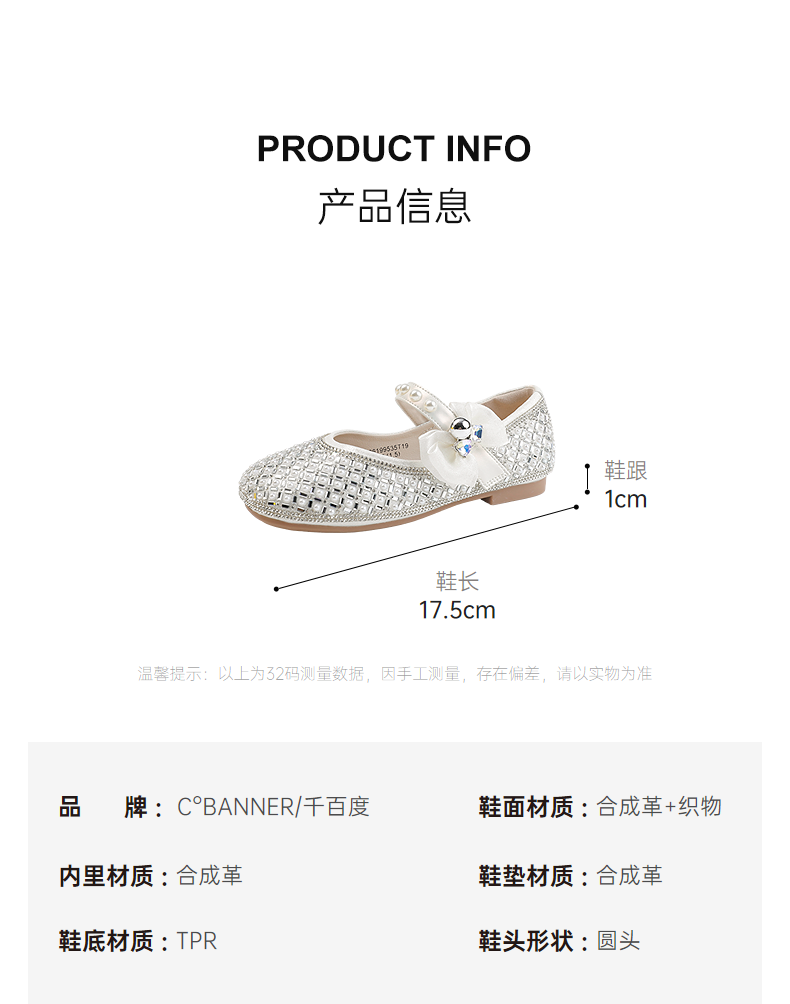 千百度2026春季童鞋缤纷水钻密镶鞋面 时尚潮流公主鞋A26199535