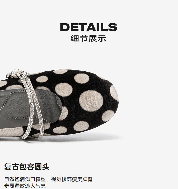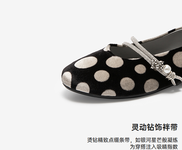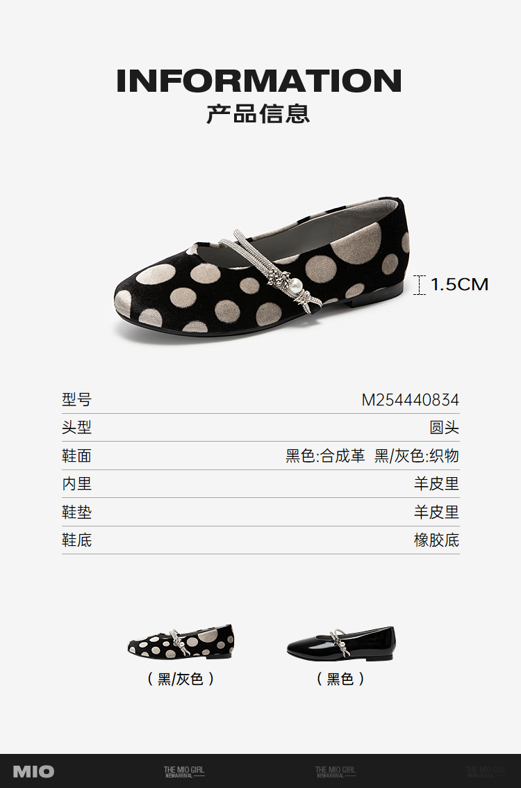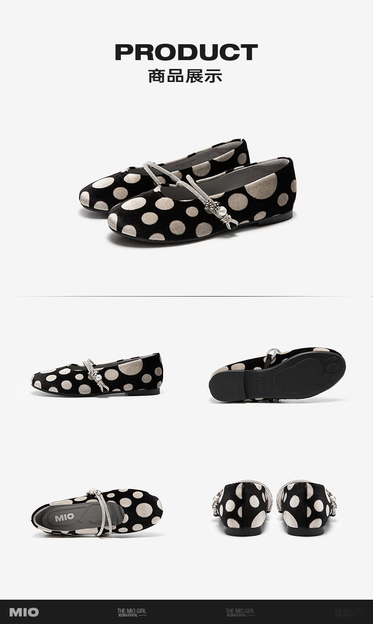 MIO米奥单鞋女平底一脚蹬一字带复古圆头波点玛丽珍M254440834