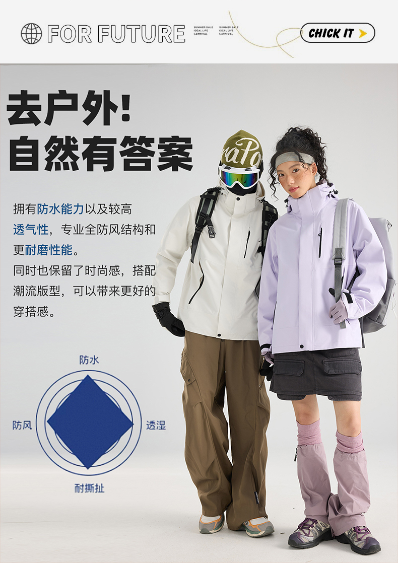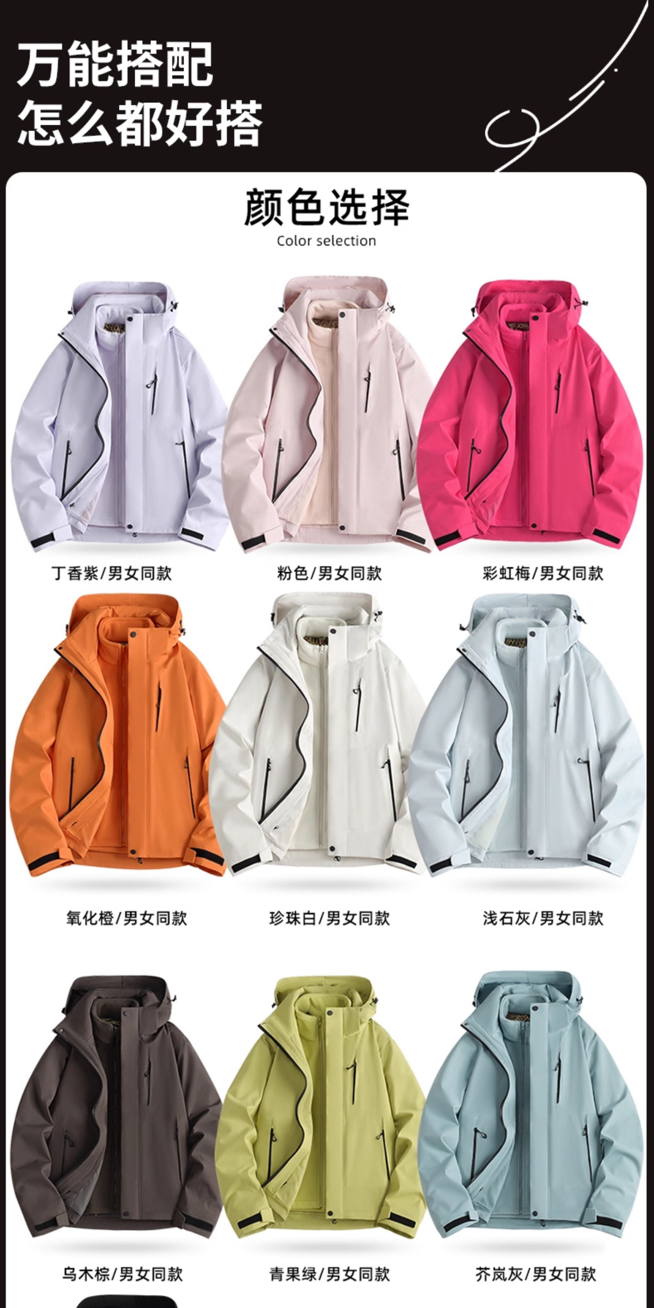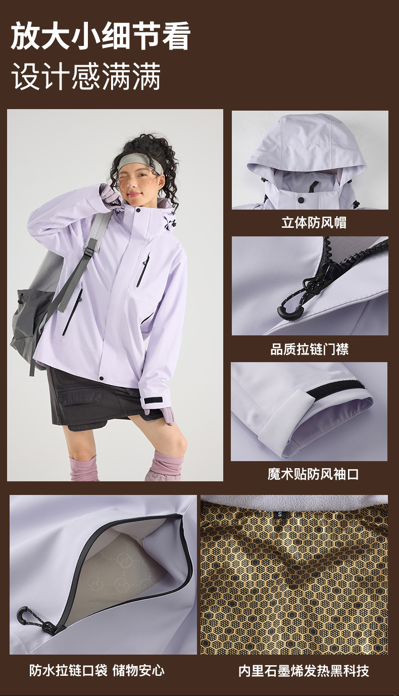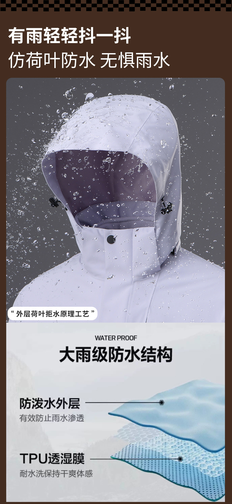 LUCKY DEER幸运鹿情侣款防风防泼水保暖全热封封防大雨级别三合一冲锋衣