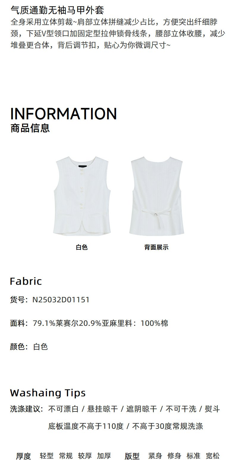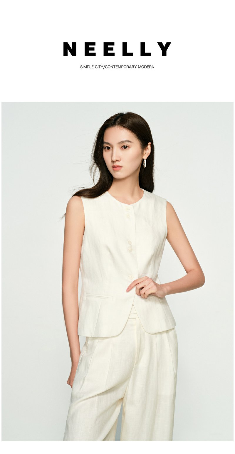 NEELLY纳俪商场同款春季新款时尚气质无袖马甲女极简个性收腰上衣N25032D01151