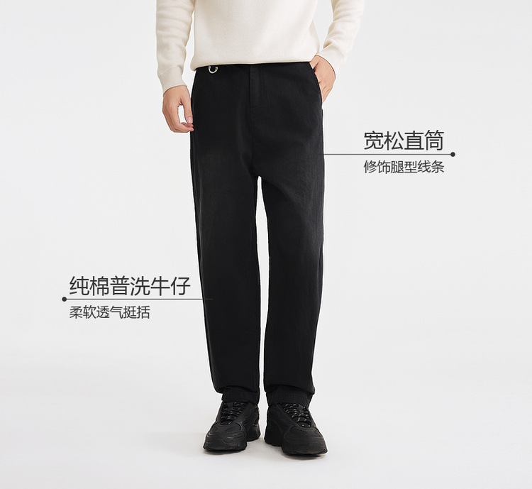墨麦客男装普洗全棉牛仔裤男2025冬季新款简约宽松男士裤子91456