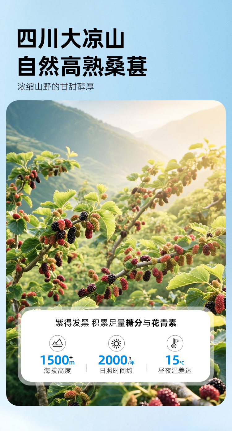 【顺 丰】 西域美农 四川大凉山 自然熟速冻桑葚 清爽不甜腻 低负担轻食 花青素满满 200g/袋 顺丰冷链发货