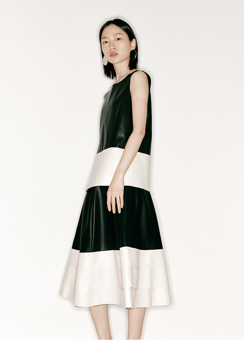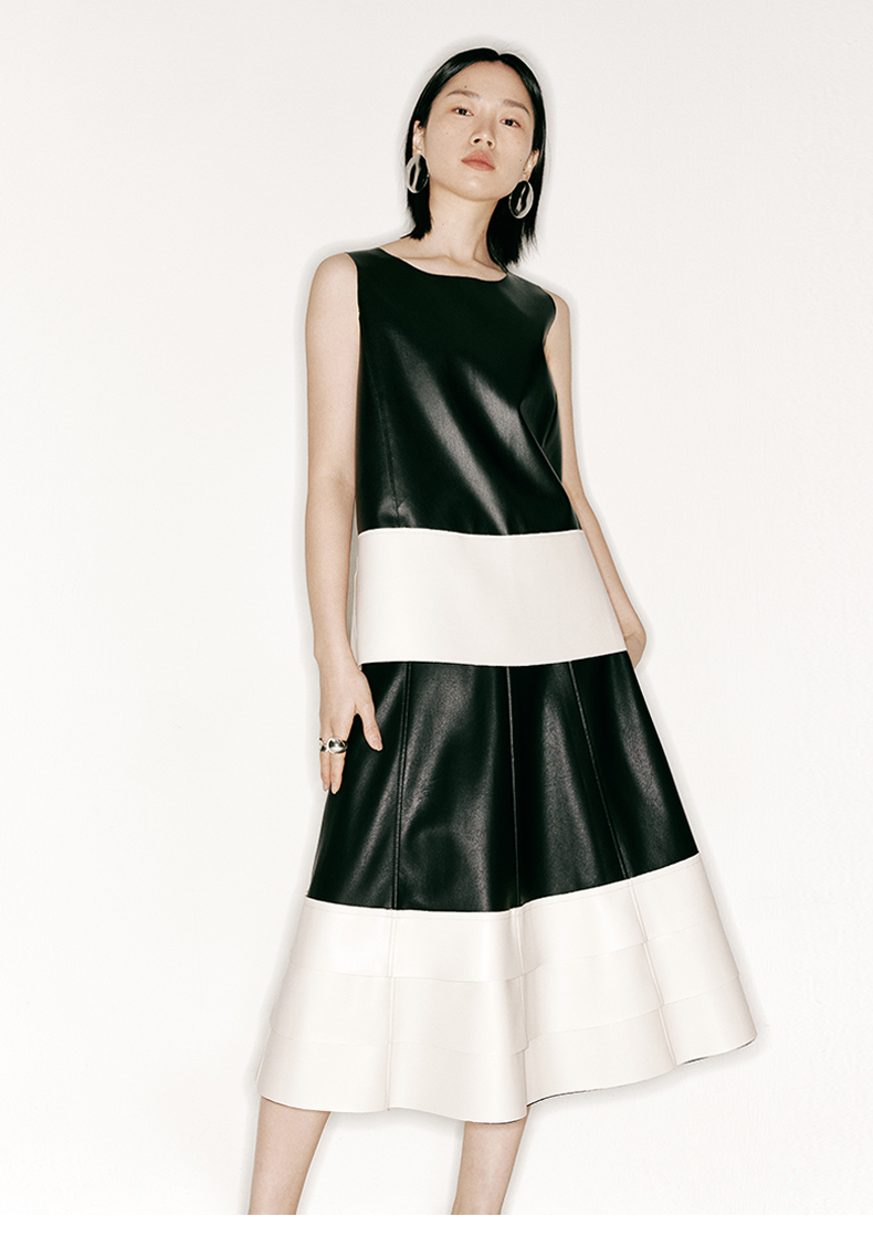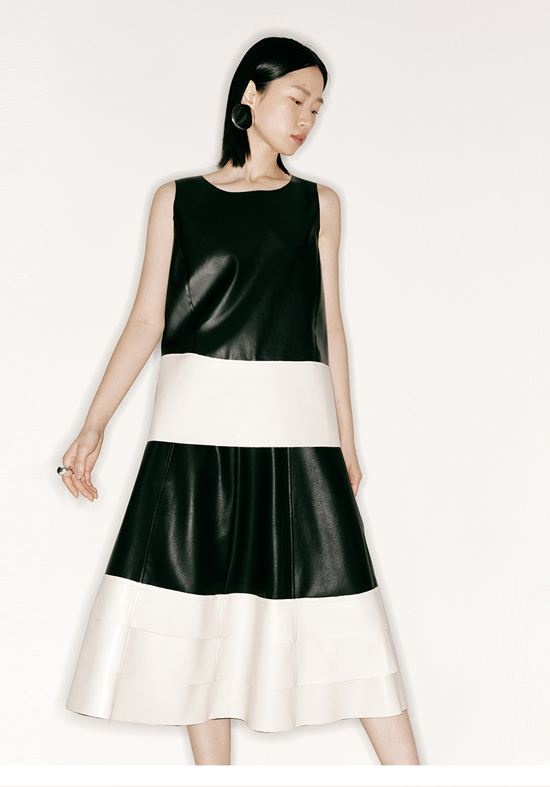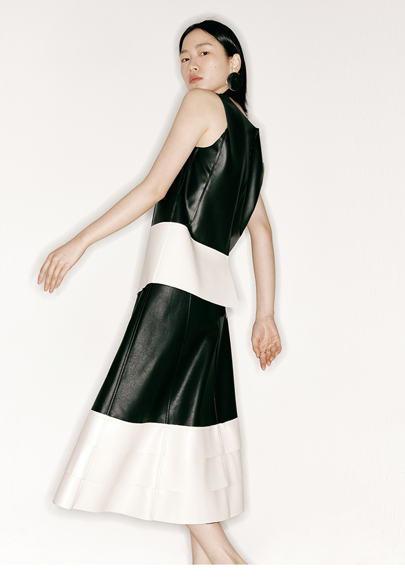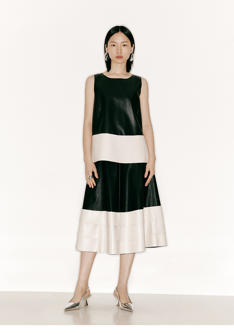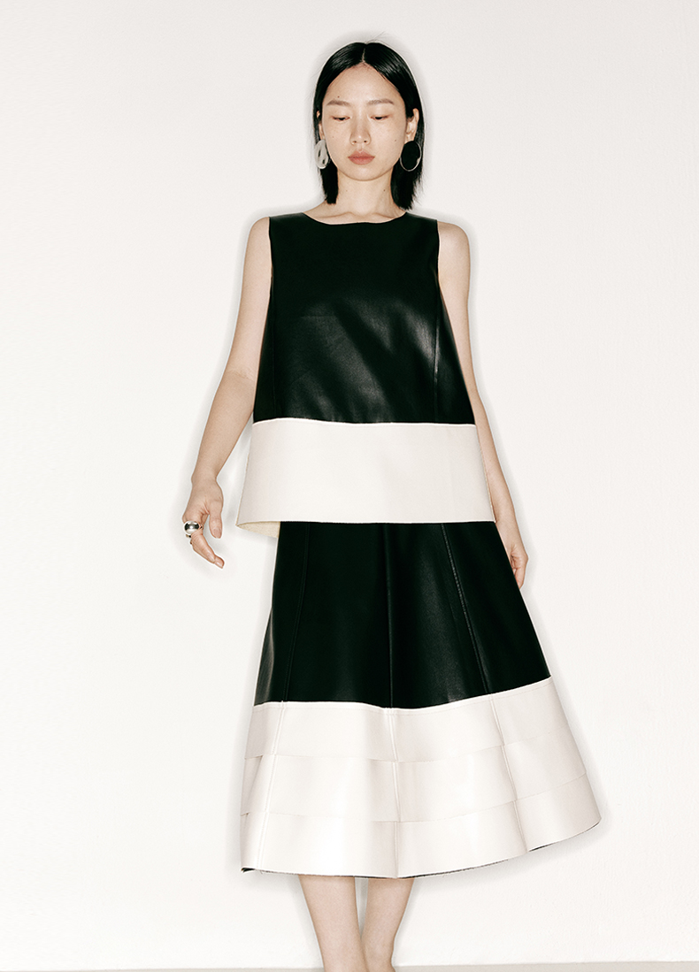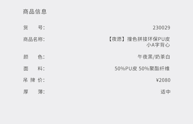 【夜愿】撞色拼接环保PU皮小A字背心/230029