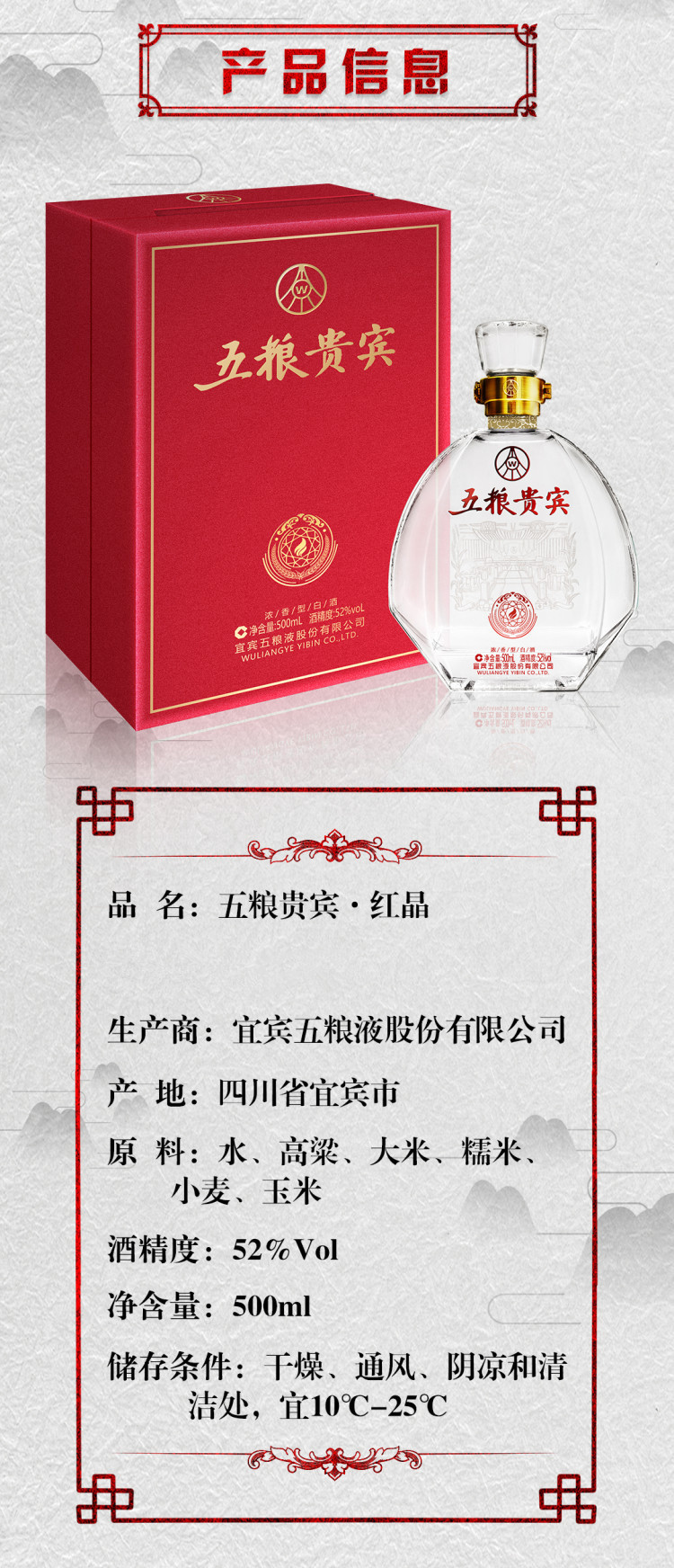 五粮液股份 五粮贵宾·红晶 52度 500ml 浓香型白酒