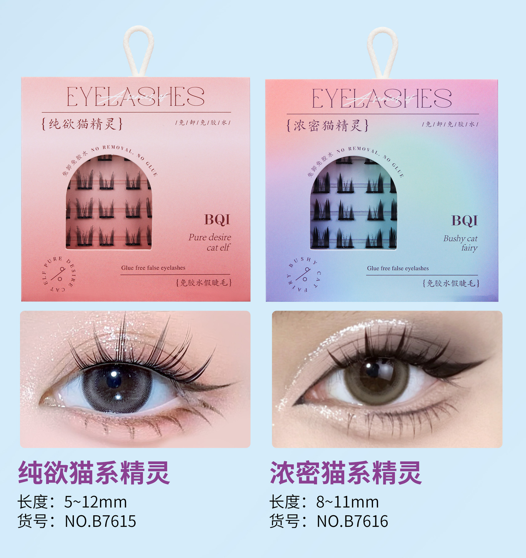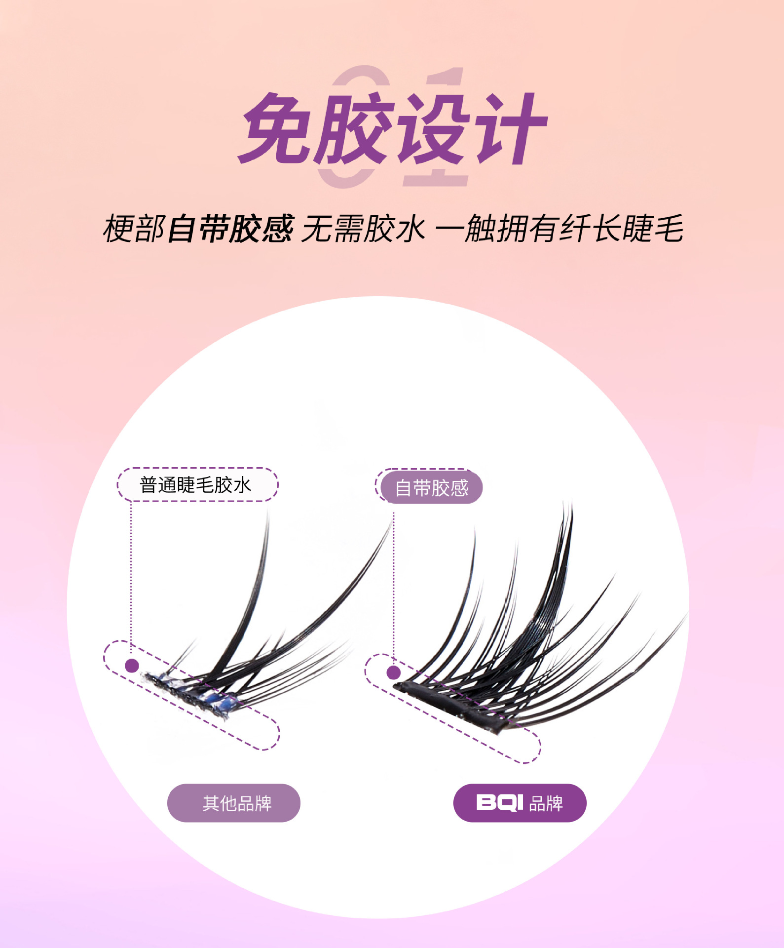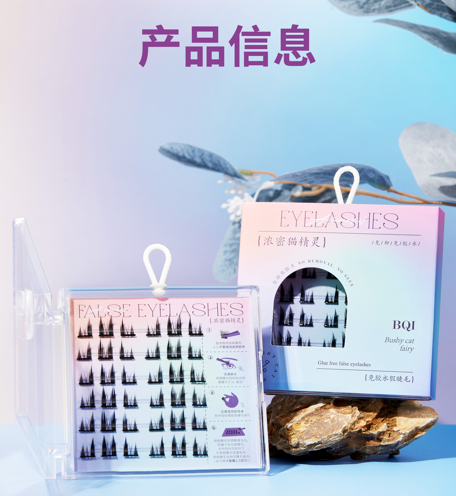 【BQI免胶水假睫毛 细梗懒人自粘嫁接睫毛】浓密卷翘自然 镊子套装睫毛