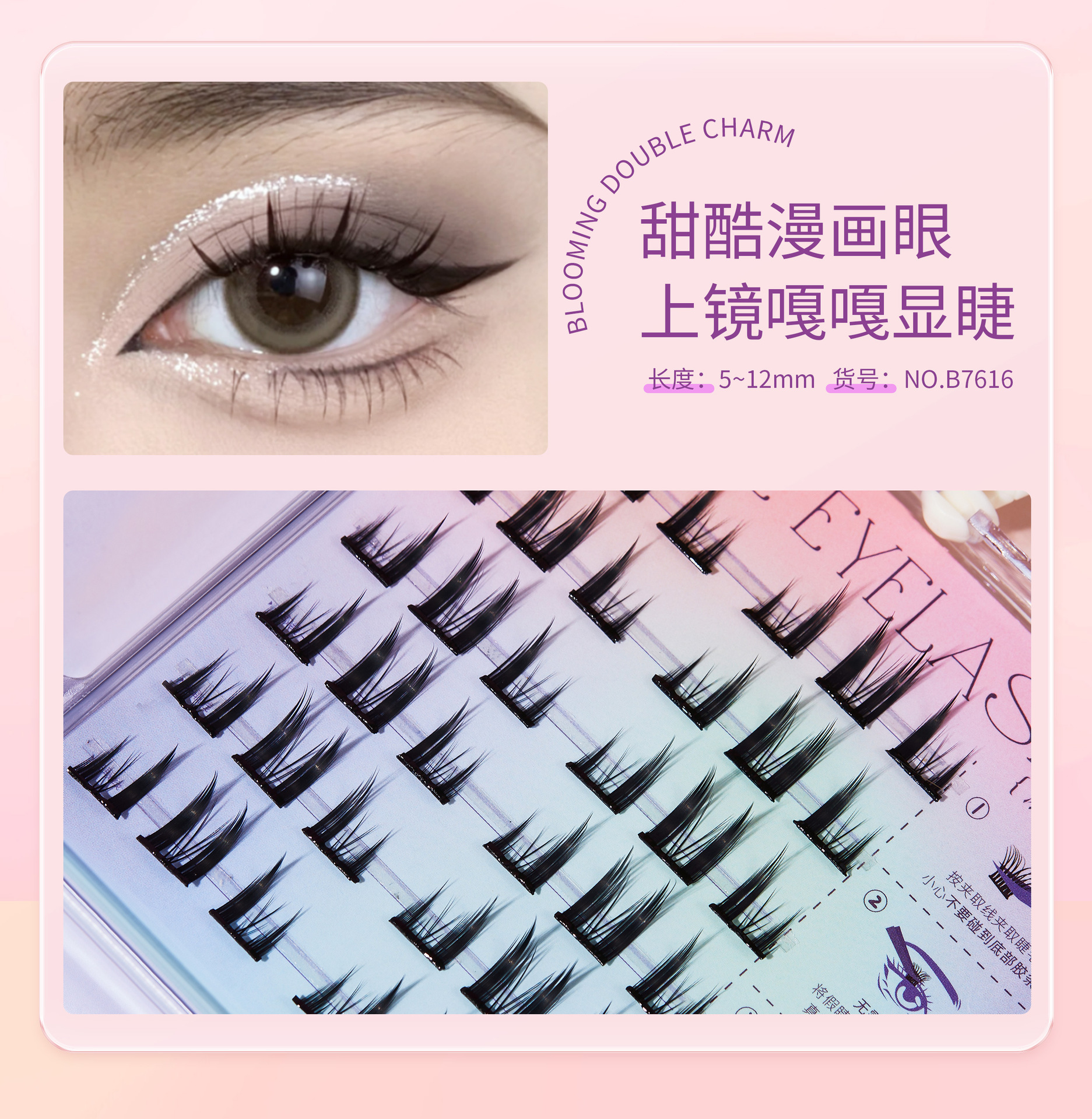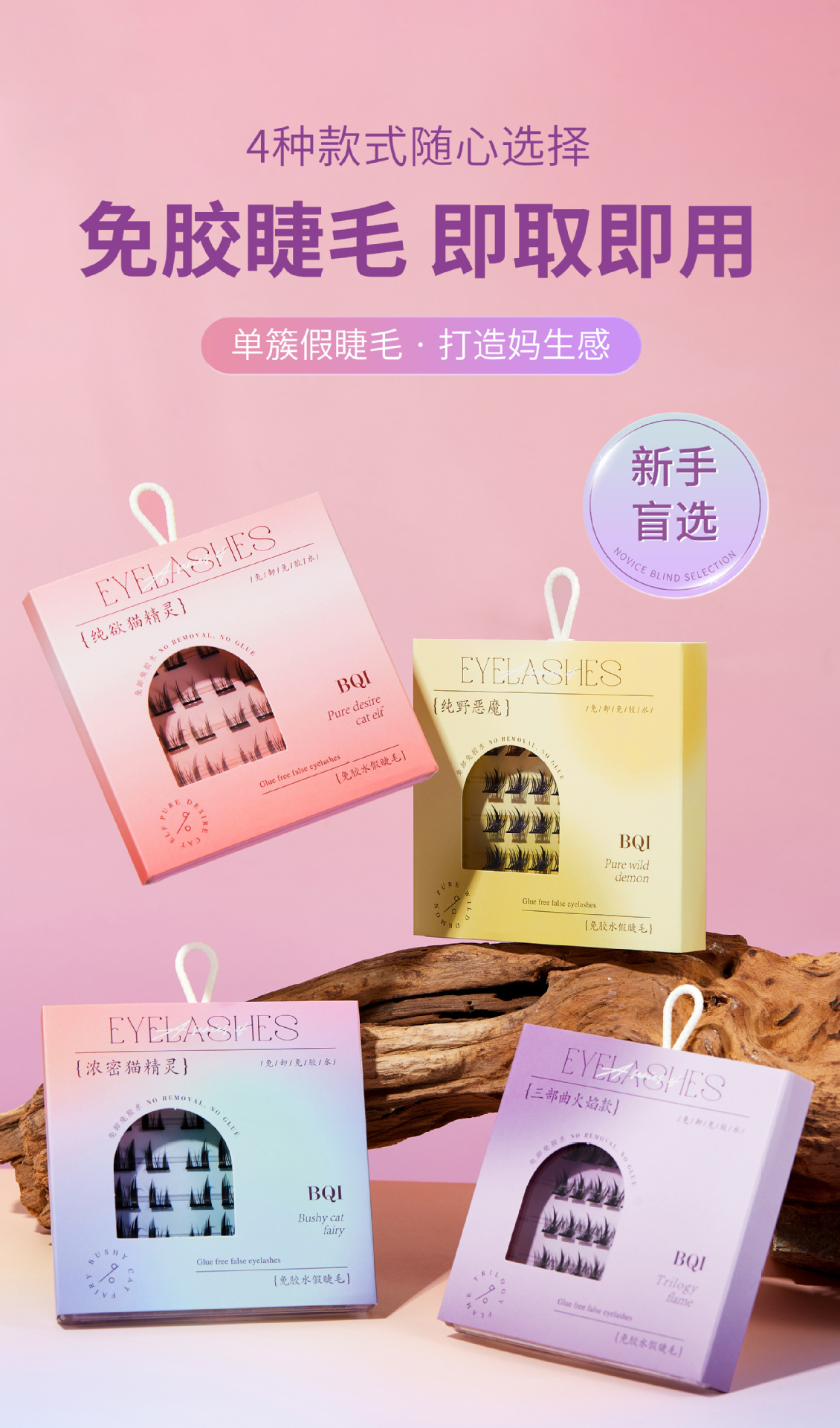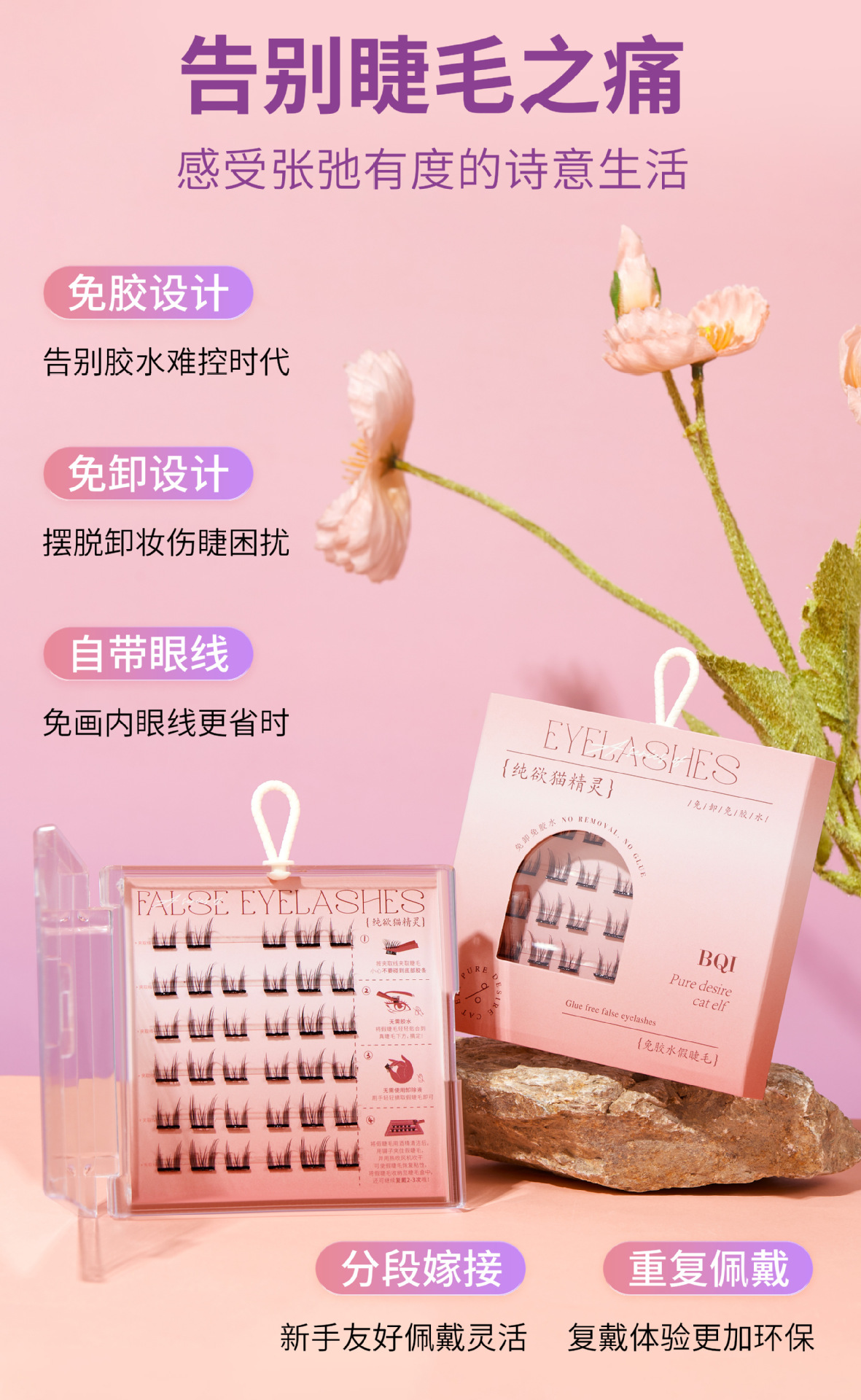 【BQI免胶水假睫毛 细梗懒人自粘嫁接睫毛】浓密卷翘自然 镊子套装睫毛